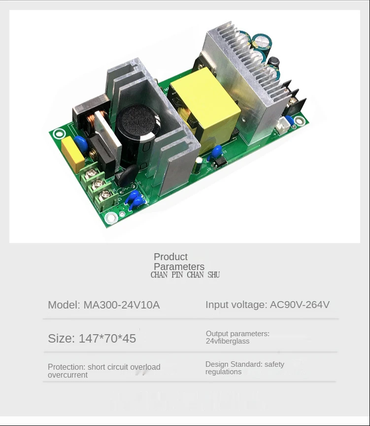 Placa de fuente de alimentación conmutada 300W24V10A12.5A de 1 vía, fabricante de placa desnuda personalizada, placa de fuente de alimentación conmutada Ruido de onda de salida: 150MVP