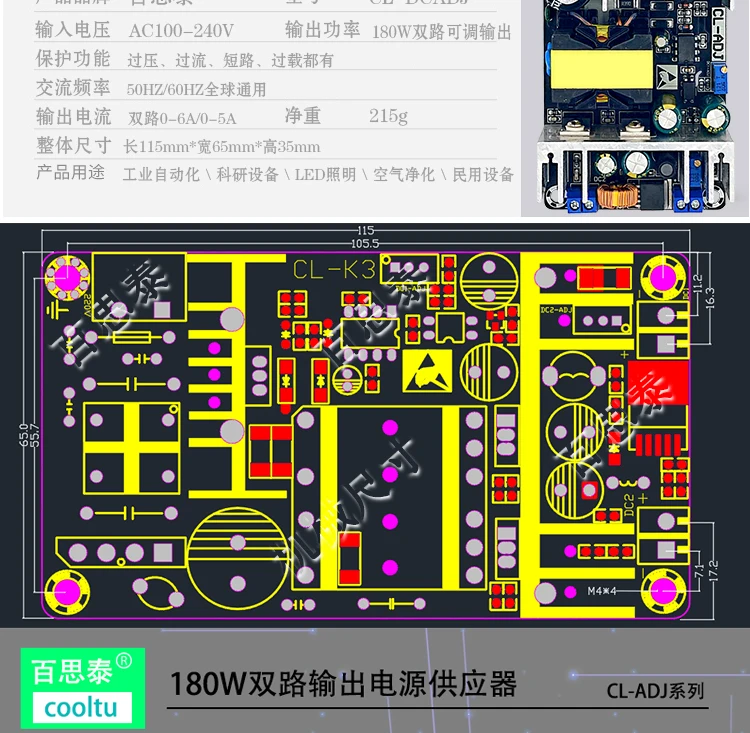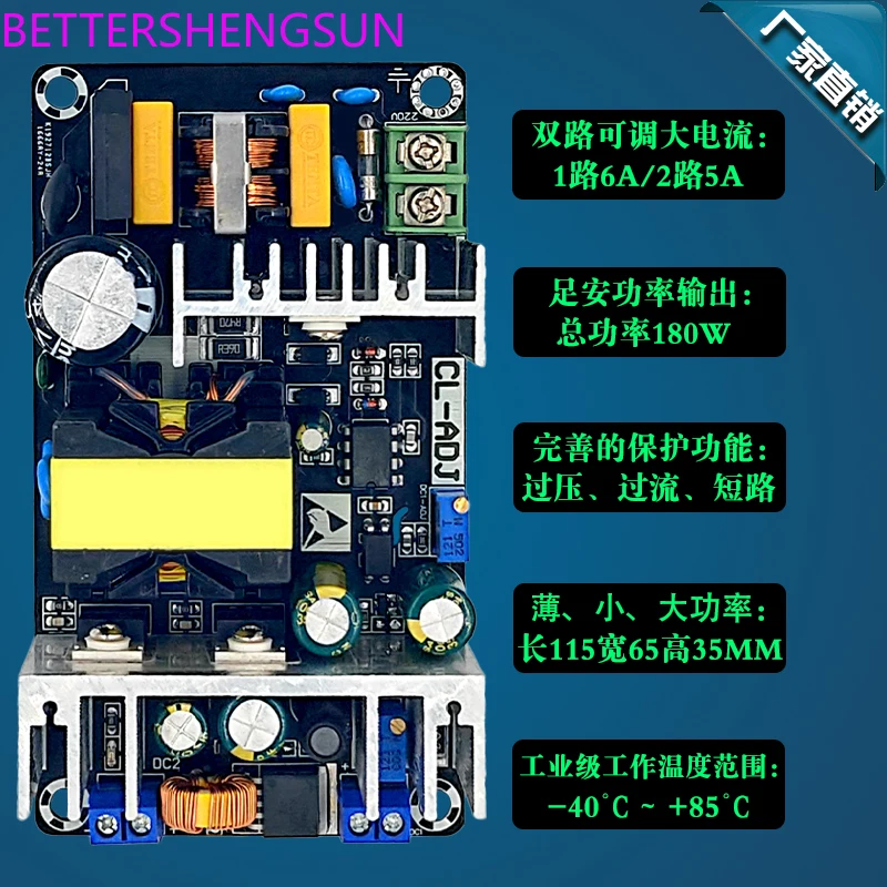 Comprar Placa de fuente de alimentación conmutada 24V12V5V, módulo de fuente de alimentación industrial de alta potencia, placa desnuda, salida dual, ajustable, 180W