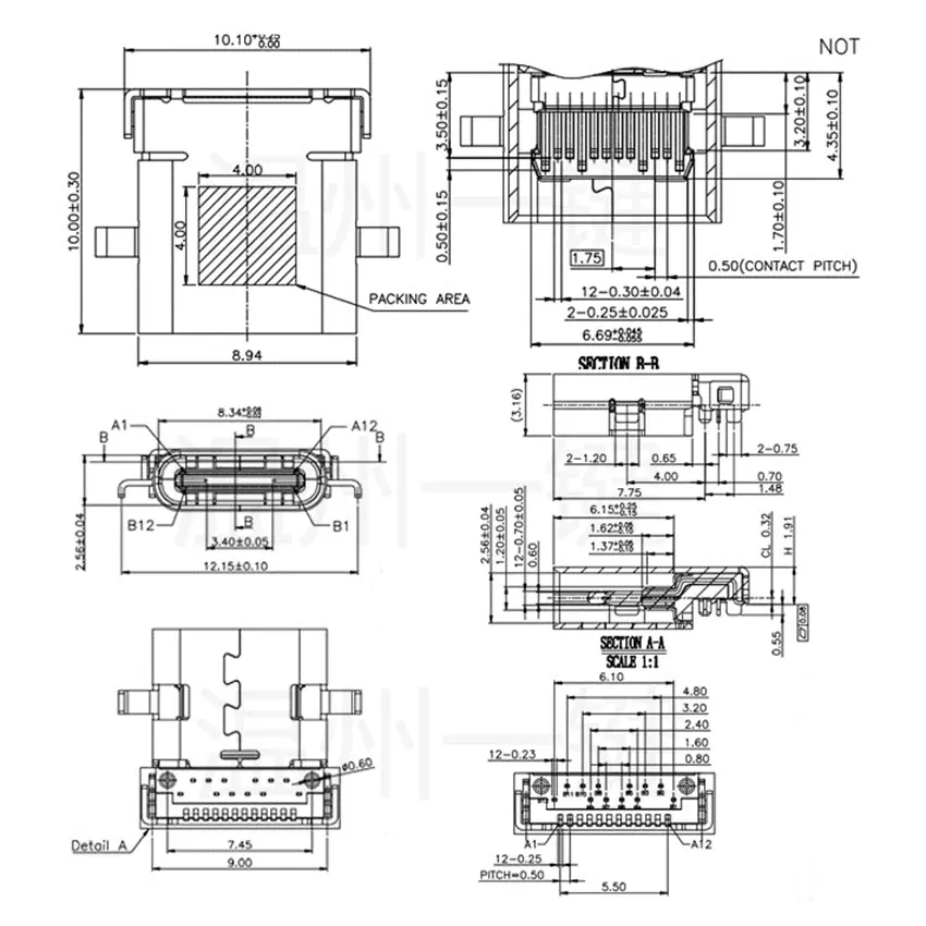 Comprar Placa de hundimiento USB 3,1 tipo C, 24 Pines, 24 P, inserción frontal y trasera, pegado 10,00, cuerpo largo, hembra, Conector de puerto de carga