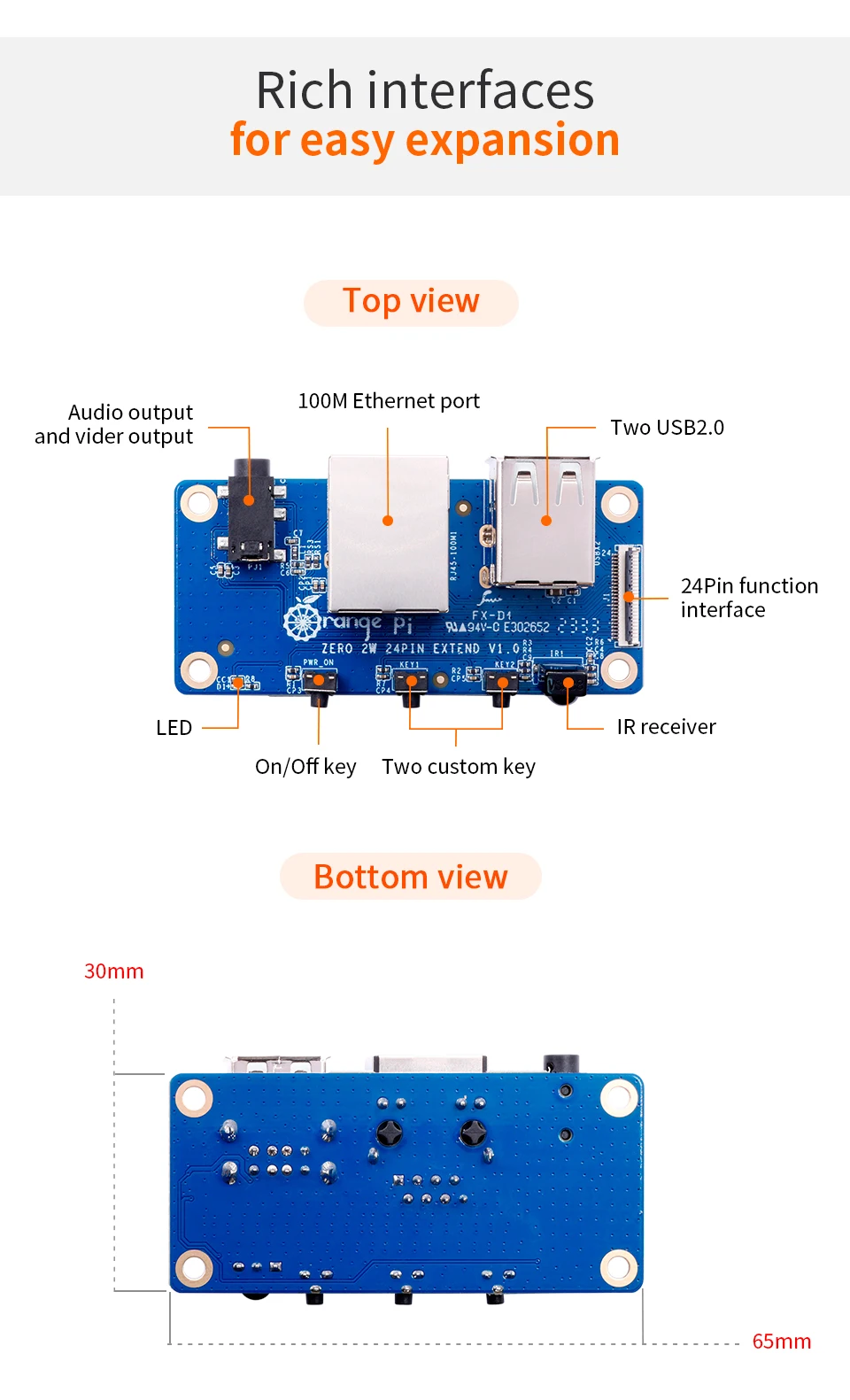 Placa de interfaz de placa de expansión Orange Pi Zero 2W adecuada para placa Orange Pi Zero2 WUSD 4,90