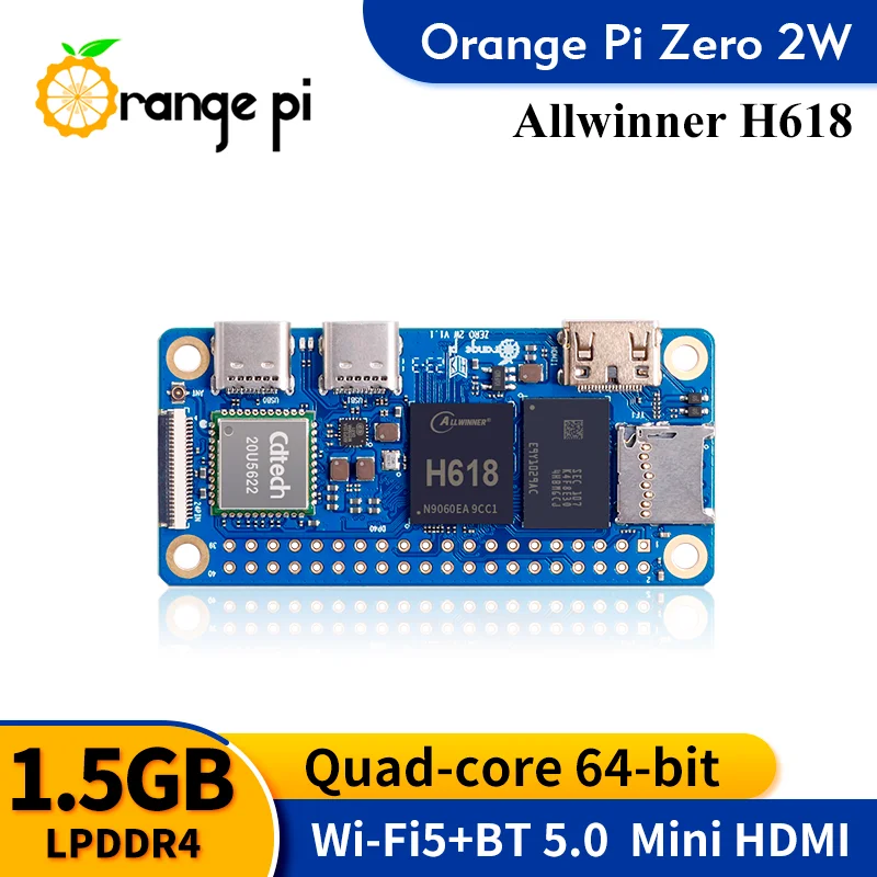 Orange Pi Zero 2W Computadora de placa única 1,5 GB RAM DDR4 Allwinner H618 WiFi-BT Orange Pi Zero 2 W Placa de desarrollo Zero2 WUSD 22,71