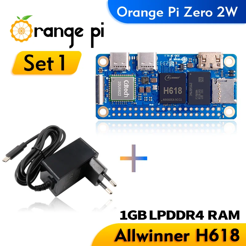 Orange Pi Zero 2W 1GB + Fuente de alimentación Placa única Computadora Allwinner H618 WiFi-BT Orange Pi Zero 2W Placa de desarrollo Zero2WUSD 17,80