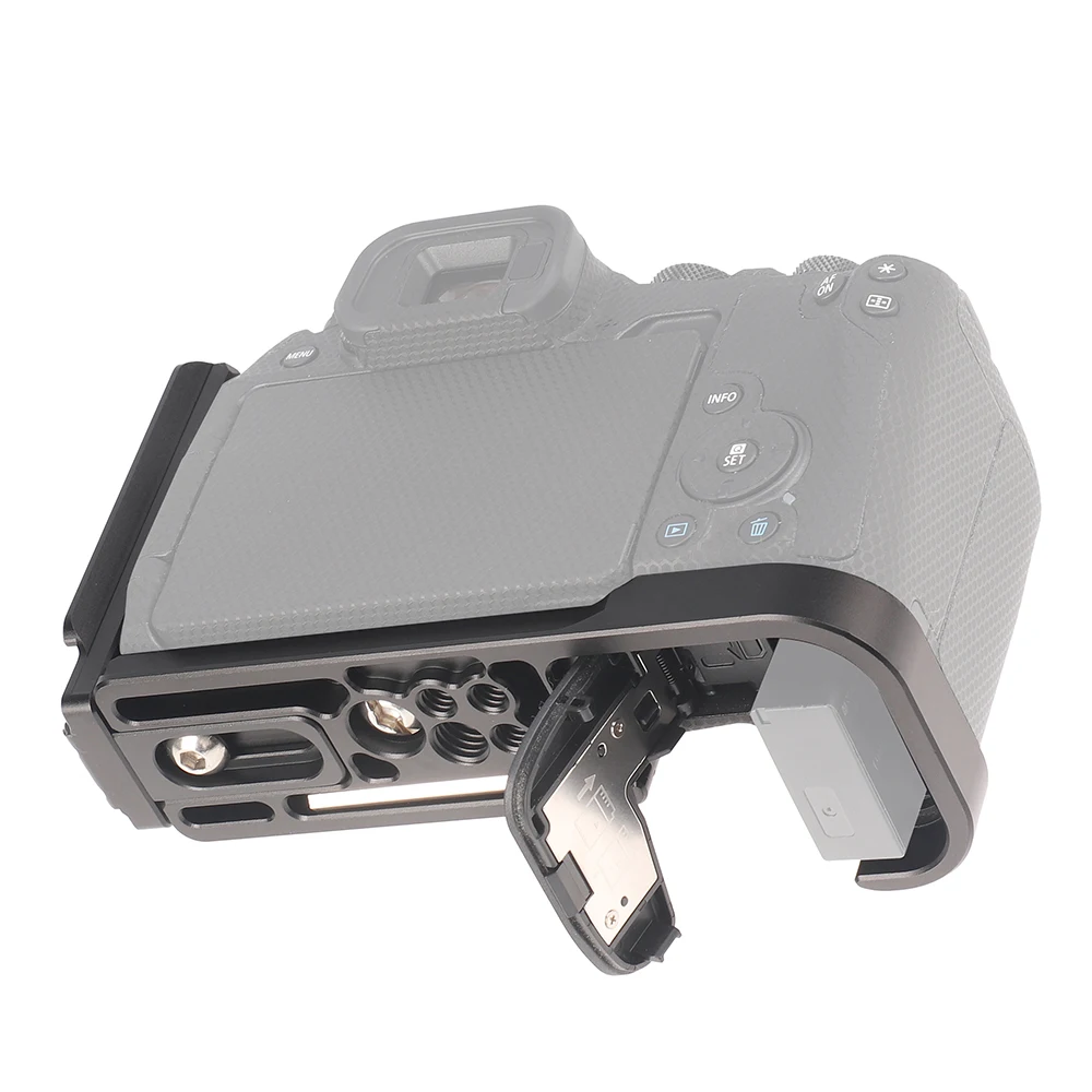 4. El diseño del conducto garantiza que el uso del puerto de conexión no se verá afectado al disparar verticalmente ajustando la posición del tornillo del conducto de la cámara.