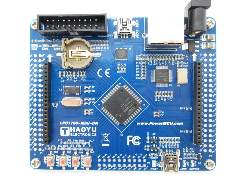 La serie LPC1700 utiliza un núcleo RISC de 32 bits ARM® Cortex®-M3 de alto rendimiento que funciona a 100 MHz. Tiene memoria incorporada de alta velocidad (hasta 512K bytes de Flash y 64K bytes de SRAM), un amplio conjunto de puertos de E/S y periféricos mejorados conectados a dos buses APB. La placa incluye un ADC de 12 bits de 8 canales y un DAC de 10 bits, cuatro temporizadores de 16 bits de propósito general, una interfaz PWM controlada por motor, Y múltiples interfaces de comunicación estándar y avanzadas: hasta tres I2C, SPI, dos I2S, 1 SDIO, 4 USART, una interfaz USB Host/Device/OTG y dos interfaces CAN, Ethernet MIC, Interfaz de codificador de cuadratura.