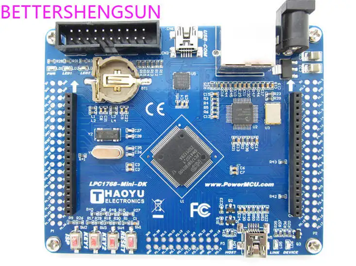 La serie LPC1700 utiliza un núcleo RISC de 32 bits ARM® Cortex®-M3 de alto rendimiento que funciona a 100 MHz. Tiene memoria incorporada de alta velocidad (hasta 512K bytes de Flash y 64K bytes de SRAM), un amplio conjunto de puertos de E/S y periféricos mejorados conectados a dos buses APB. La placa incluye un ADC de 12 bits de 8 canales y un DAC de 10 bits, cuatro temporizadores de 16 bits de propósito general, una interfaz PWM controlada por motor, Y múltiples interfaces de comunicación estándar y avanzadas: hasta tres I2C, SPI, dos I2S, 1 SDIO, 4 USART, una interfaz USB Host/Device/OTG y dos interfaces CAN, Ethernet MIC, Interfaz de codificador de cuadratura.