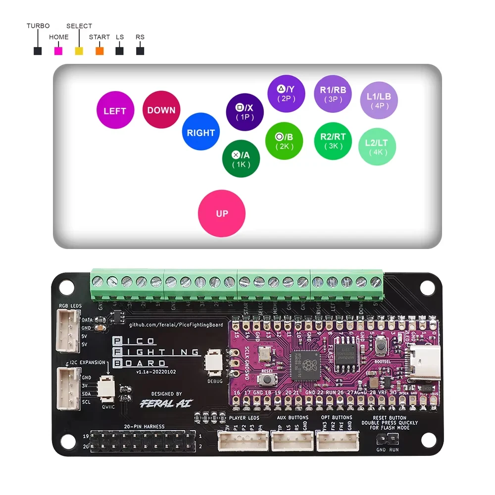Descargue la última versión de GP2040 para Pico Fighting Board desde: