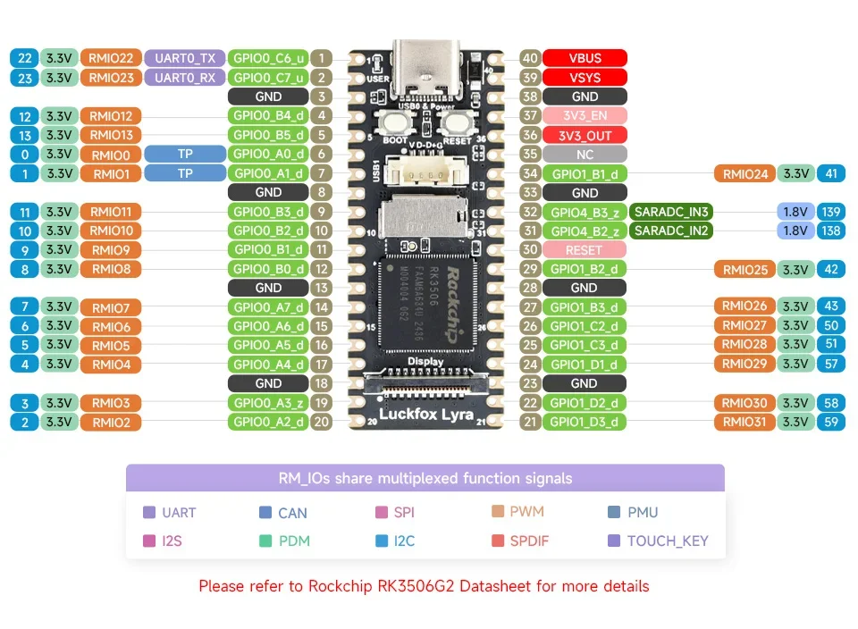 Las interfaces de baja velocidad adoptan el diseño Rockchip Matrix IO, que permite que las señales de funciones ricas compartan los pines de chip limitados, lo que hace que la adaptación del circuito periférico sea más flexible.