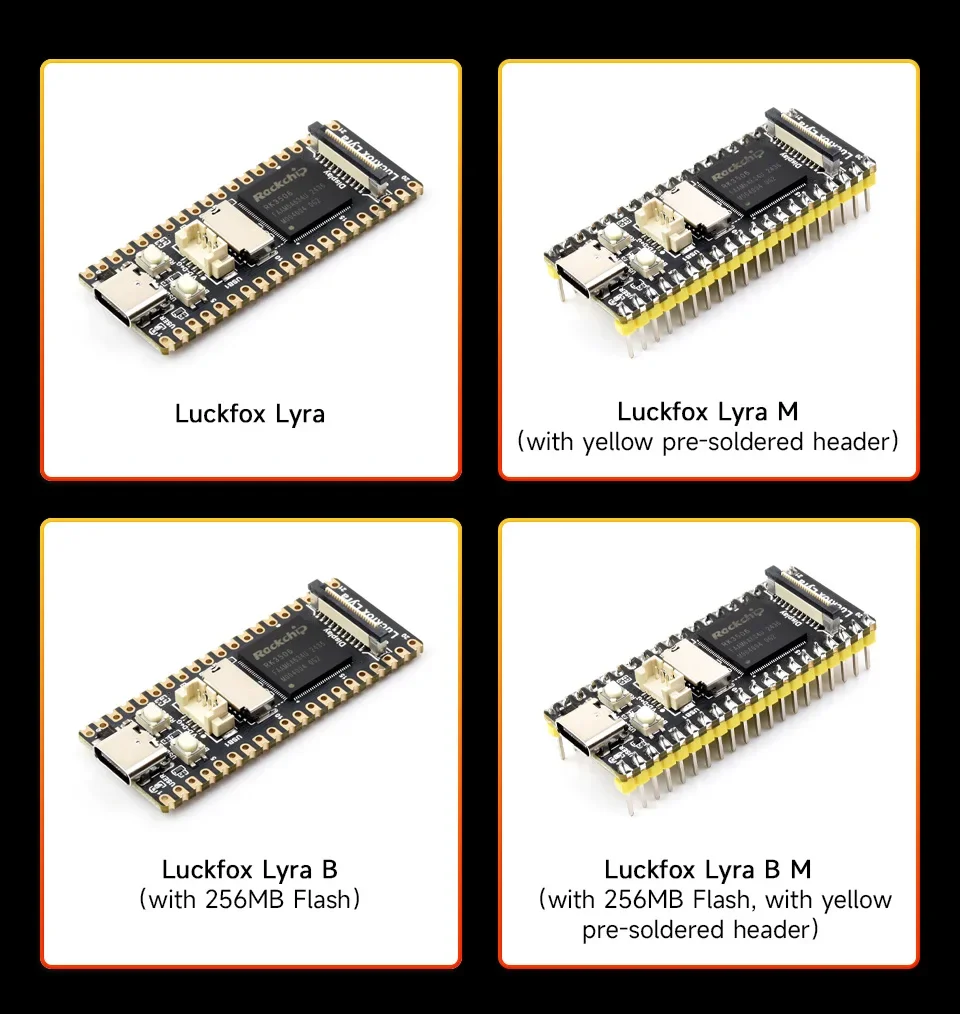 * Solo versiones de Luckfox Lyra B con Flash de 256 MB, mientras que las versiones de Luckfox Lyra requieren una tarjeta TF adicional (NO incluida) para su almacenamiento.
