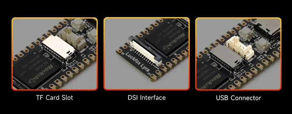 Integra ranura para tarjeta TF, interfaz DSI y conector USB