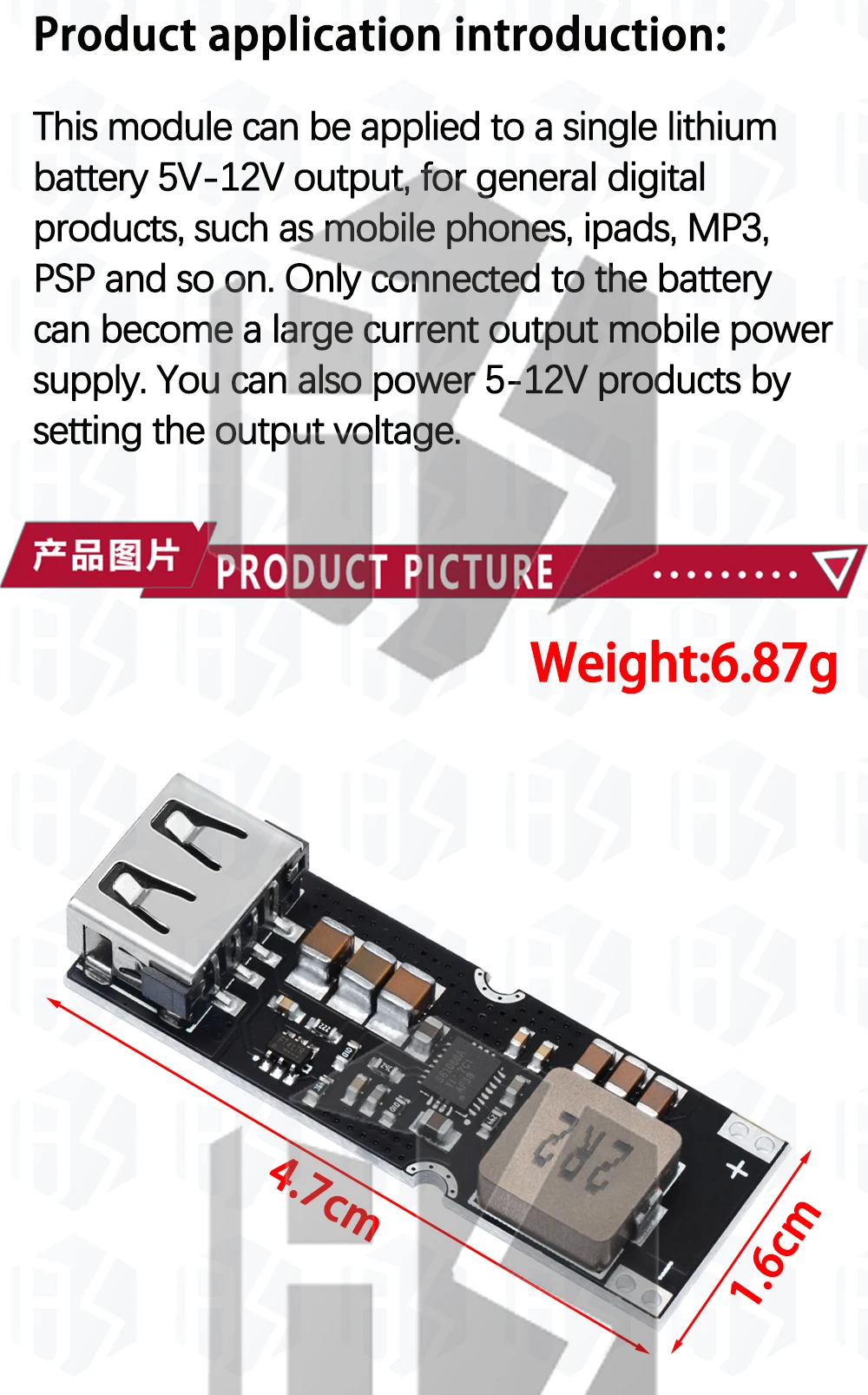 Placa de módulo de potencia de refuerzo de batería de litio de una sola celda de rendimiento: entrada de 3,7 V/4,2 V carga rápida de teléfono móvil QC2.0/QC3.0 TPS61088