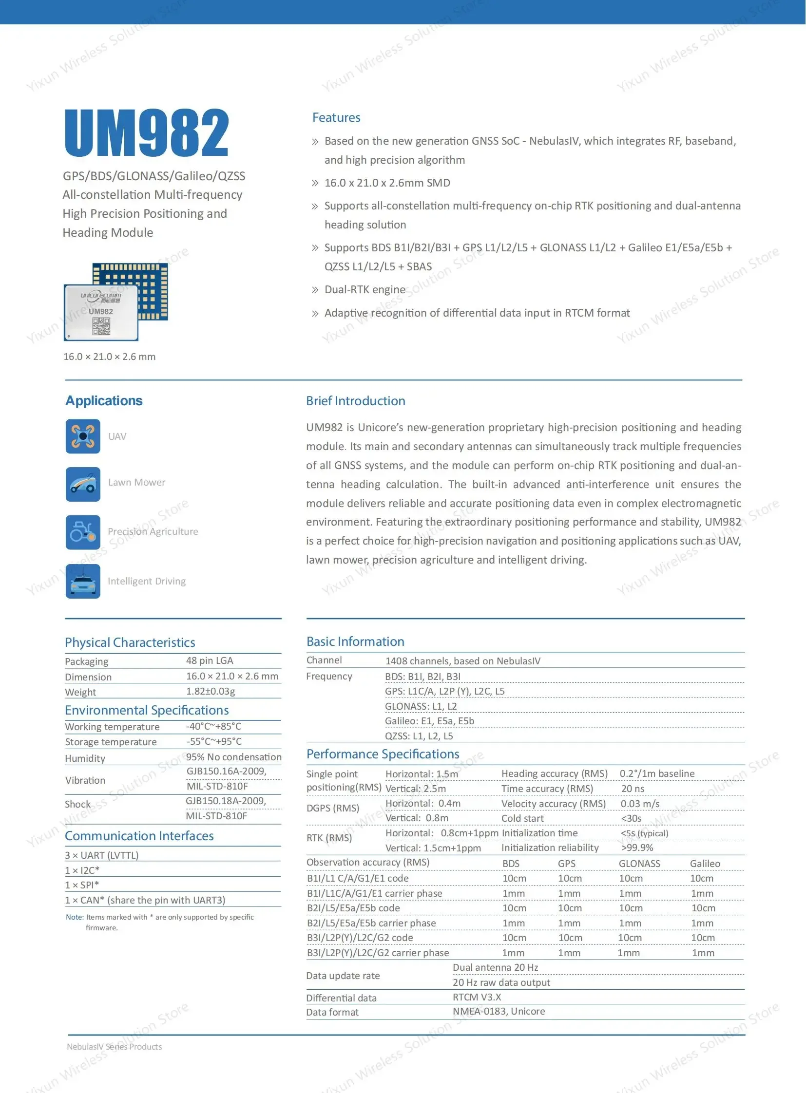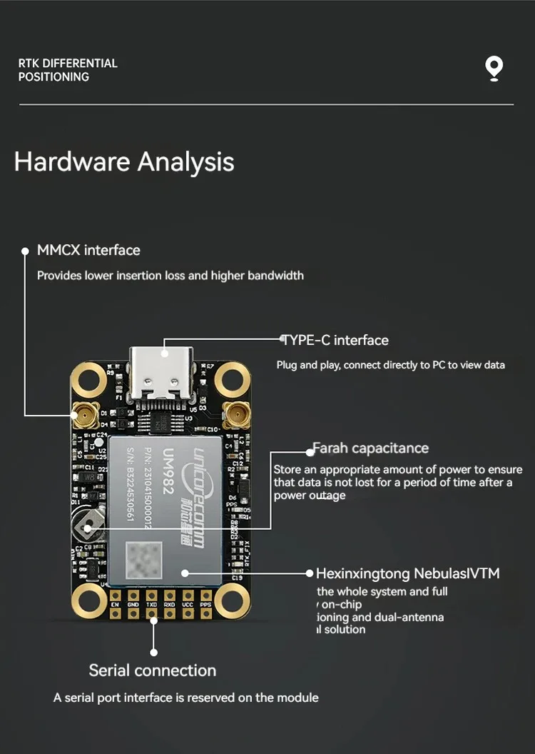 Placa de módulo RTK GNSS UM982 MMCX integrada, antena diferencial de posicionamiento relacionado, UVR, UAV, centímetro, orientación de la estación Base