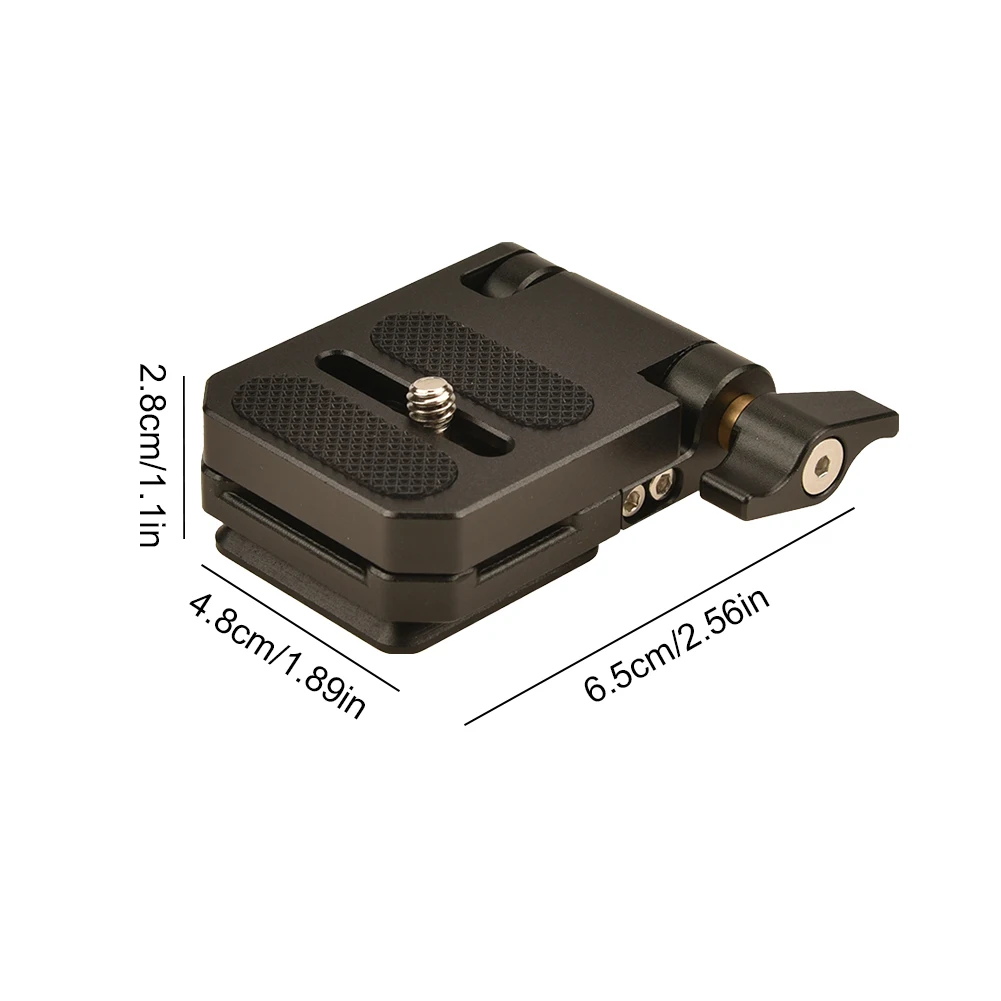Característica:1. Instalación rápida:La Placa de liberación rápida universal de la cámara está diseñada para una instalación rápida. Simplemente coloque la placa de liberación rápida en el orificio del tornillo en la parte inferior de la cámara para ahorrar un tiempo valioso y evitar pasos de configuración complicados.