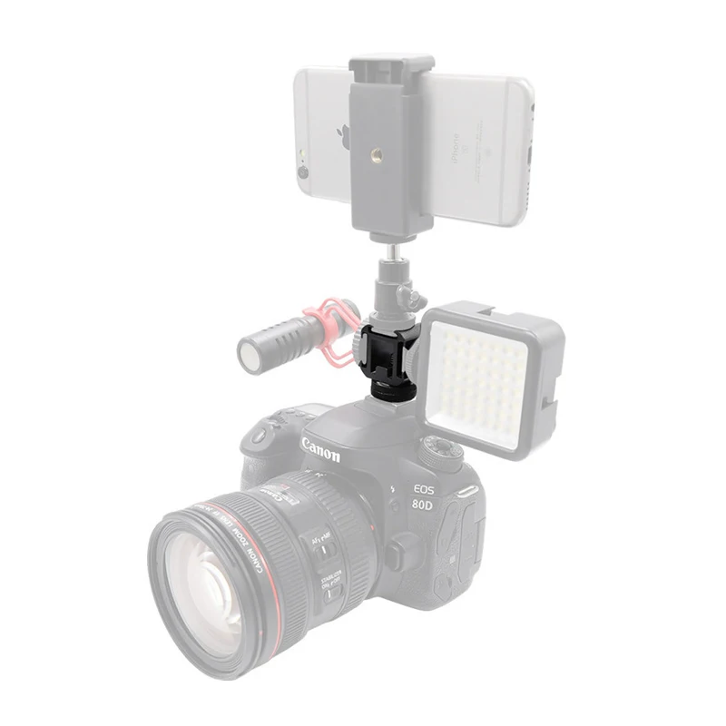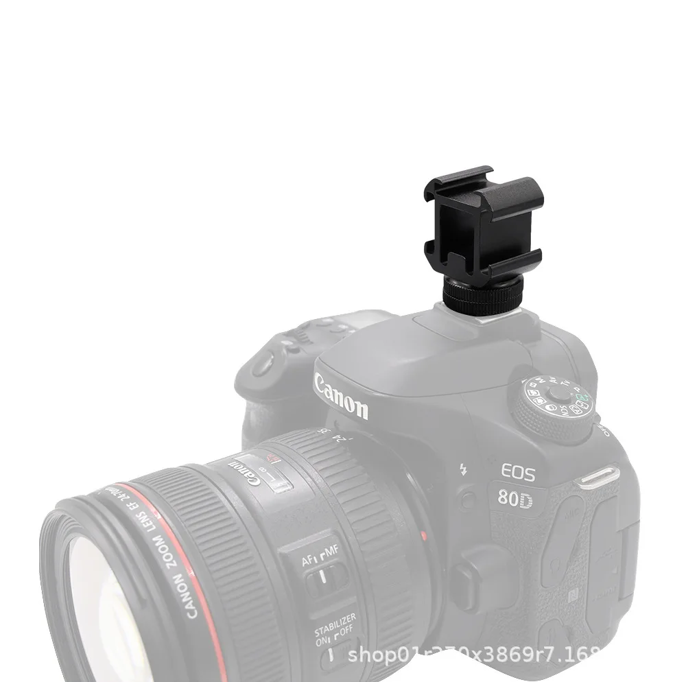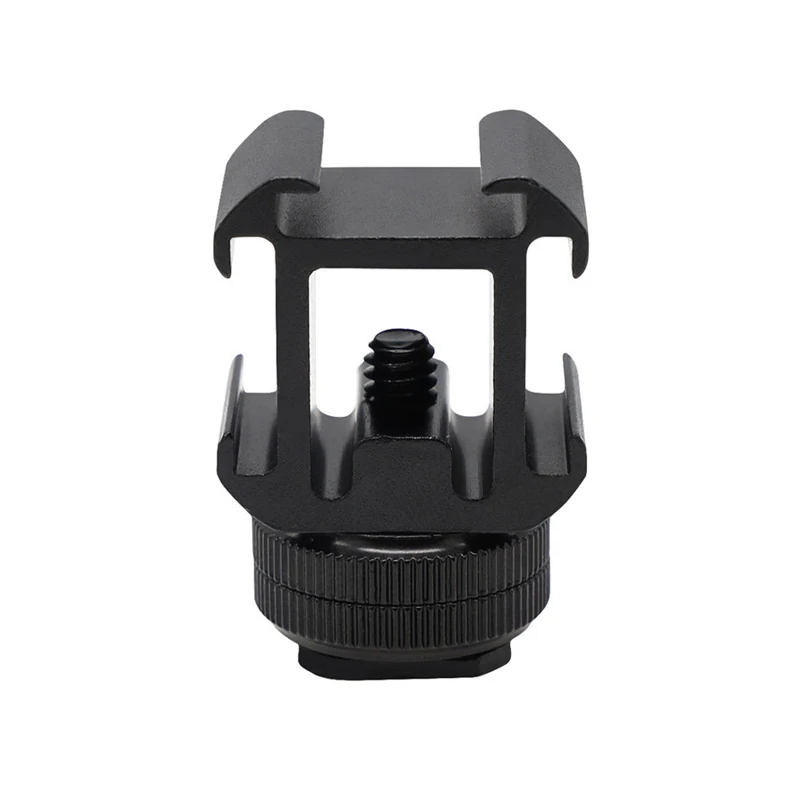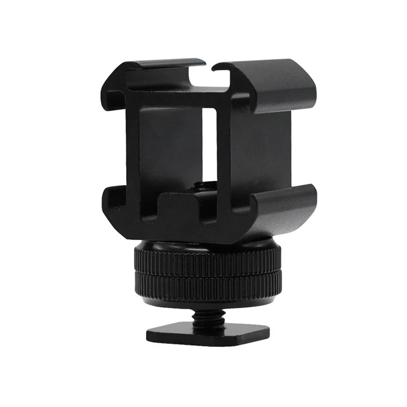 2. El soporte de zapata triple permite la fijación de 3 dispositivos simultáneamente (luz LED, flashes, etc.); las almohadillas suaves evitan arañazos o deslizamiento.
