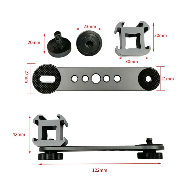 3. Roscas 1/4 de "y 3/8", diseñadas con seis roscas de 1/4 pulgadas y una rosca de 3/8 pulgadas, la barra de extensión de zapata fría permite conectar una amplia gama de equipos de fotografía.