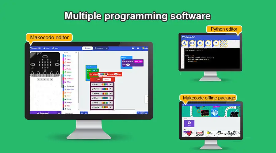 Admite múltiples idiomas de programación como MakeCode/JavaScript/Python.