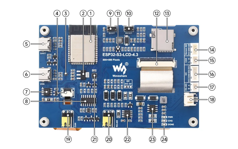 Comprar Placa de pantalla táctil ESP32 S3, pantalla LCD de 4,3 pulgadas, 800x480, LVGL con Sensor, puede I2C RS485