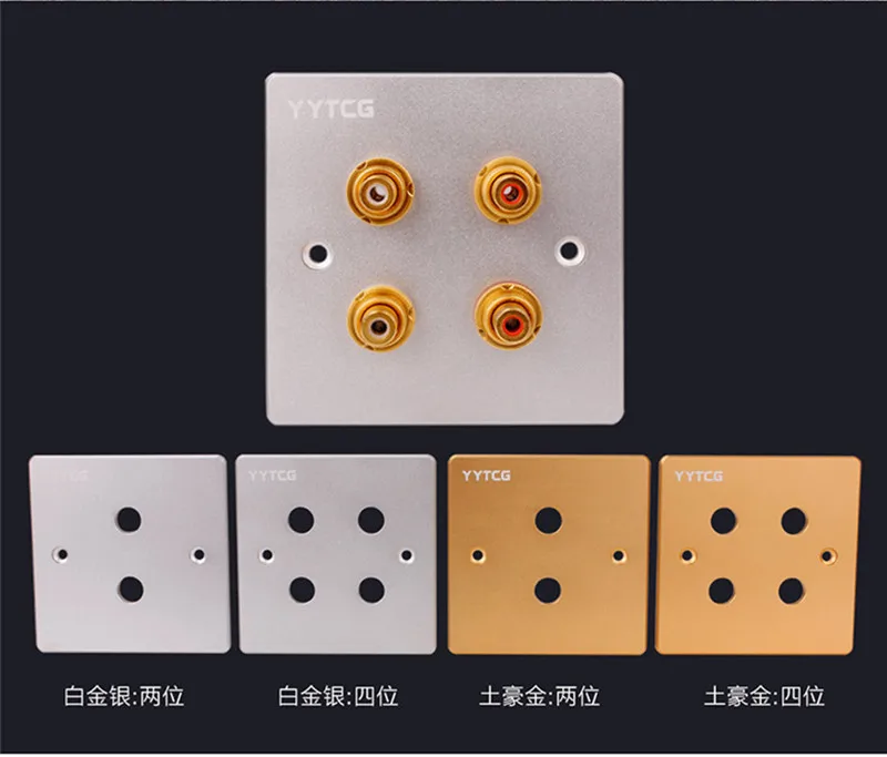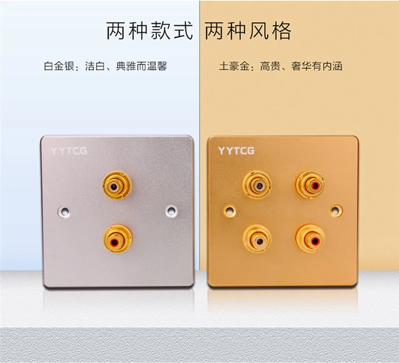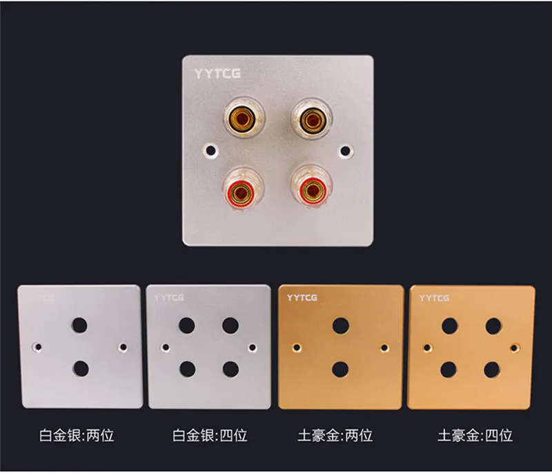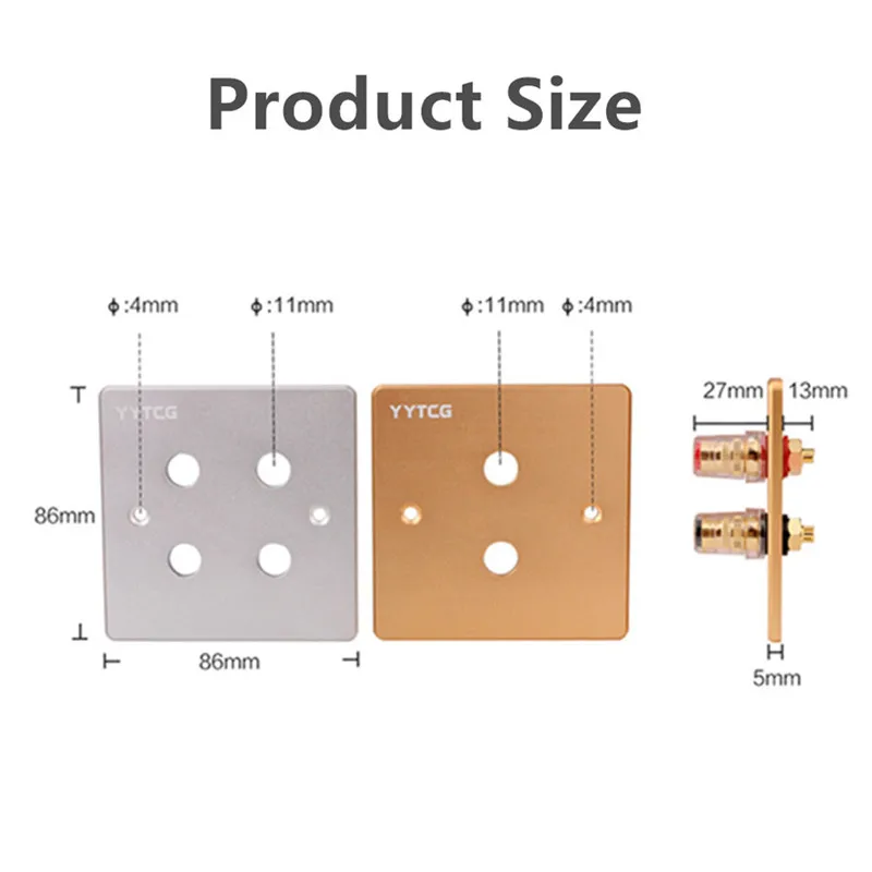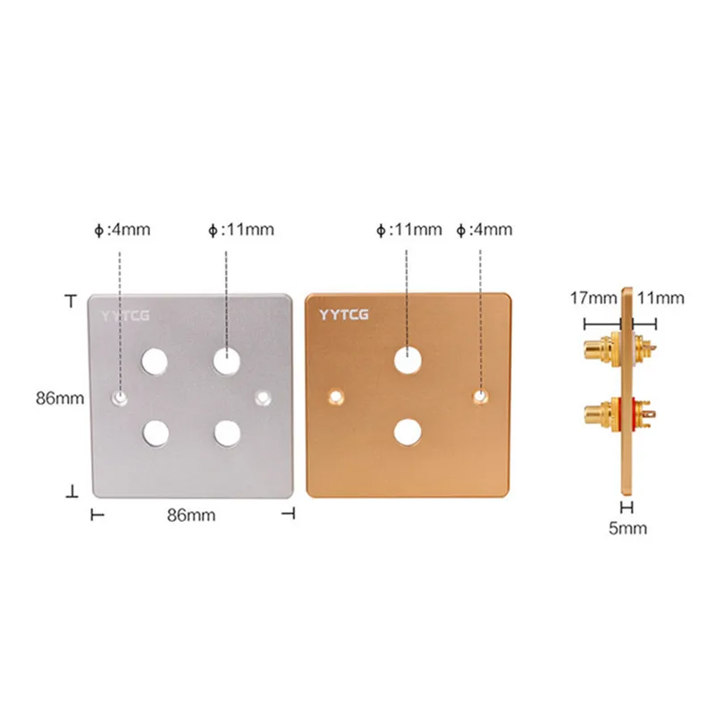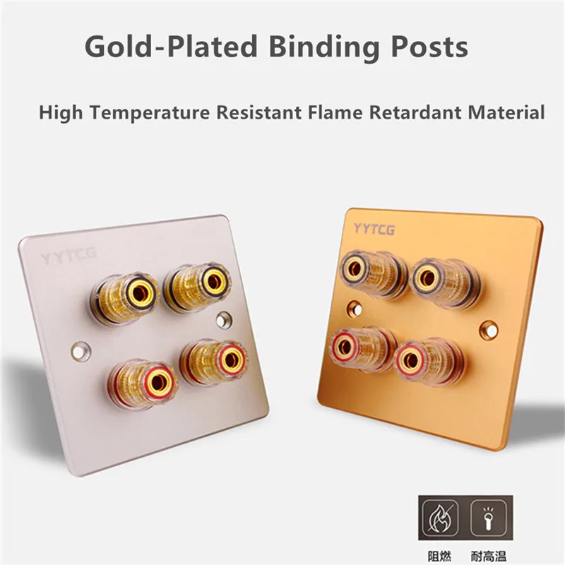 Comprar Placa de pared de 86x86mm, Panel de Audio de 2 y 4 dígitos con poste de encuadernación, Conector RCA, enchufe de Terminal hembra, enchufe de altavoz, plateado y dorado