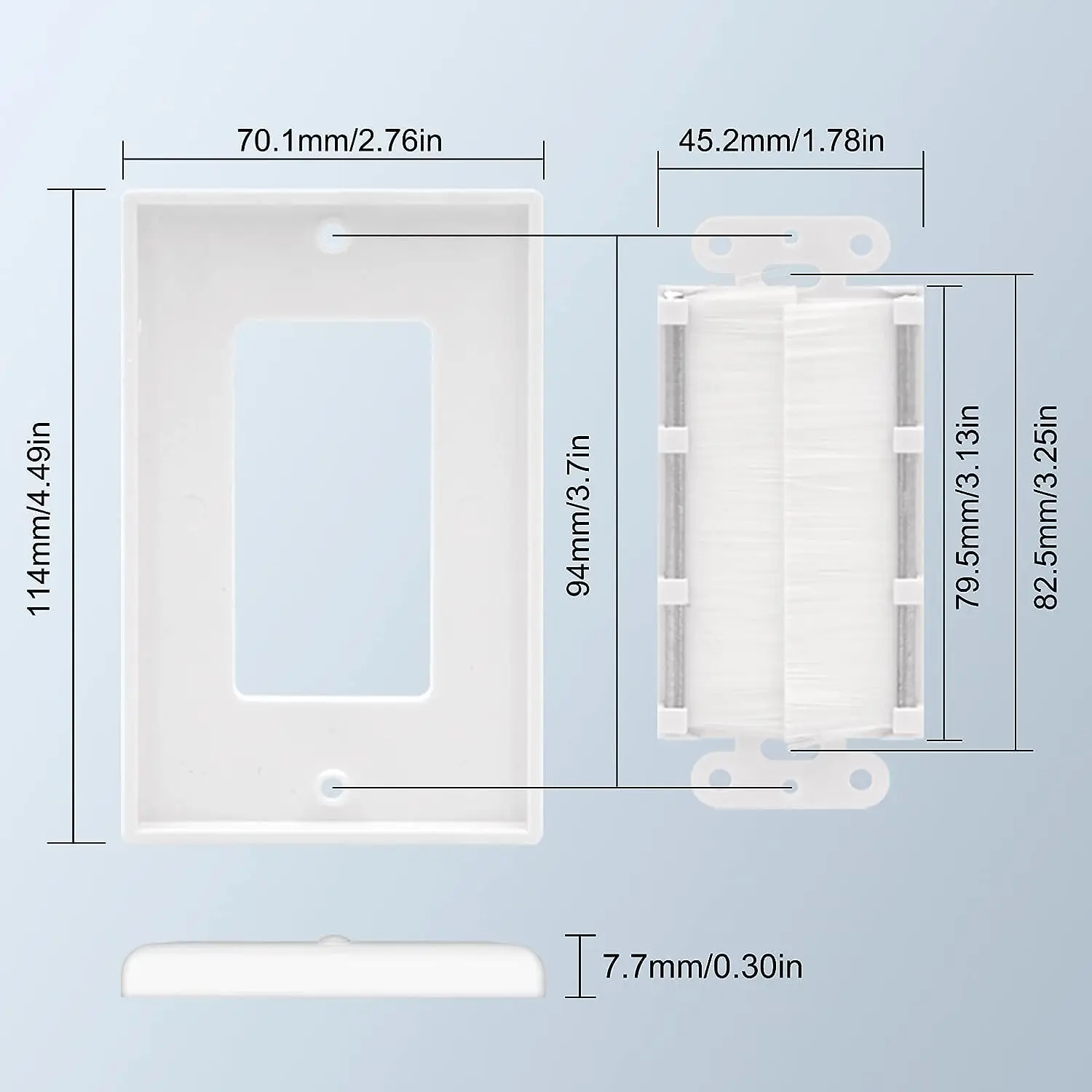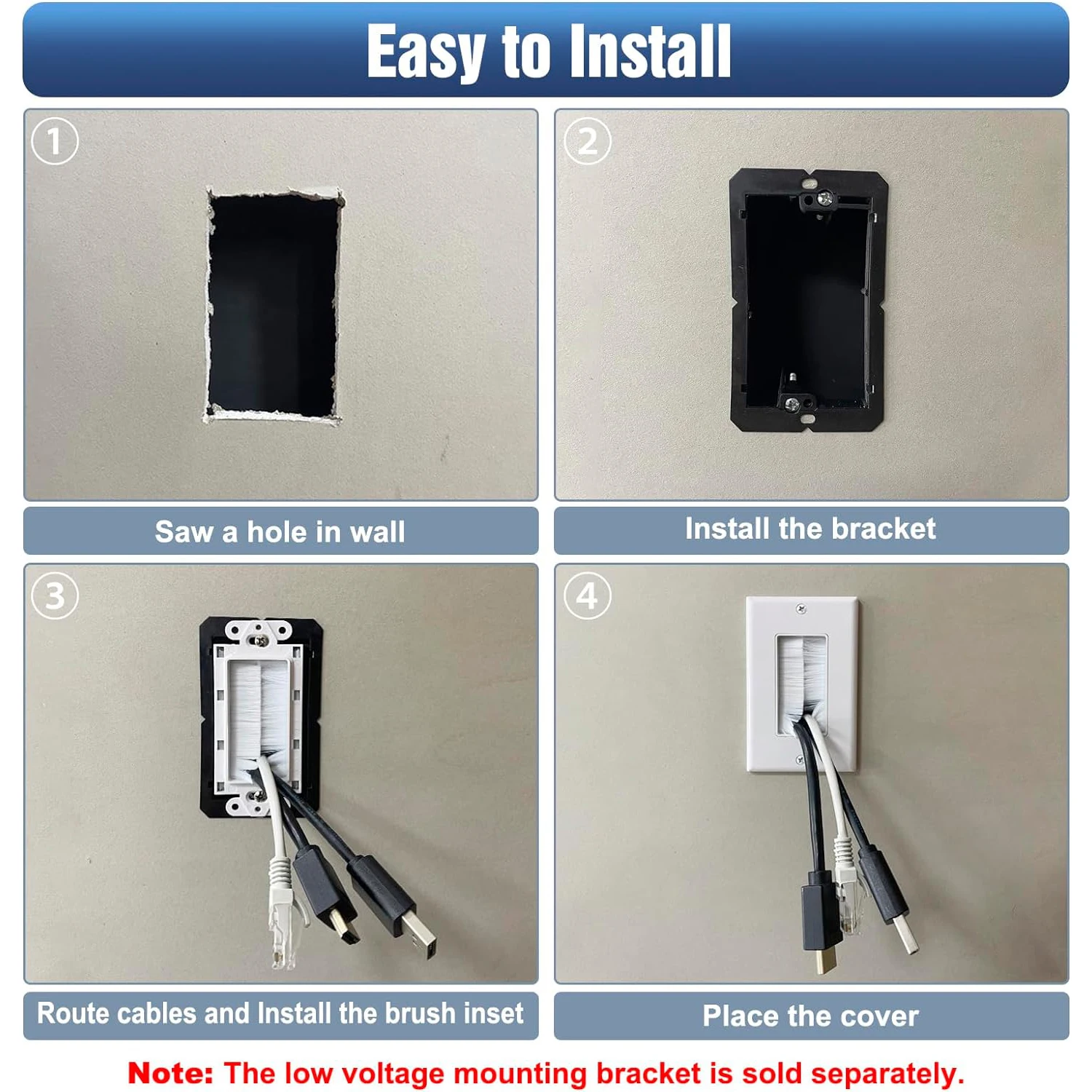 Placa de pared con cepillo ZoeRax, cubierta de pared decoradora de una sola unidad para cables de bajo voltaje, gestión de cables en la pared para TV con montaje en pared