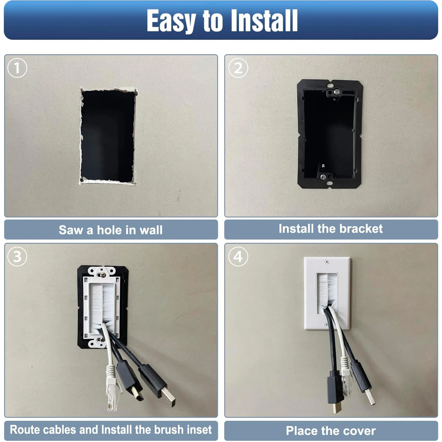 Placa de pared con cepillo ZoeRax con soporte, inserto de paso de cable con cubierta decorativa de una sola unidad para cables de bajo voltaje, ocultador de cables para TV con montaje en pared, sistema de cine en casa
