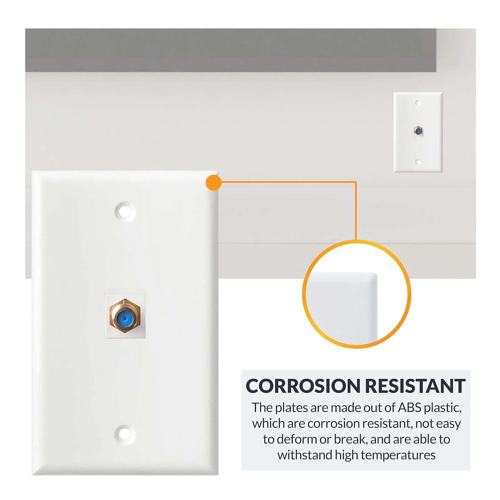 Placa de alta calidad:El conector de cable tipo F chapado en oro y el clip de retención de fácil inserción garantizan una conexión segura y libre de corrosión, simplemente úselo sin preocupaciones.Se adapta a soportes de montaje estándar de bajo voltaje de una sola unidad.
