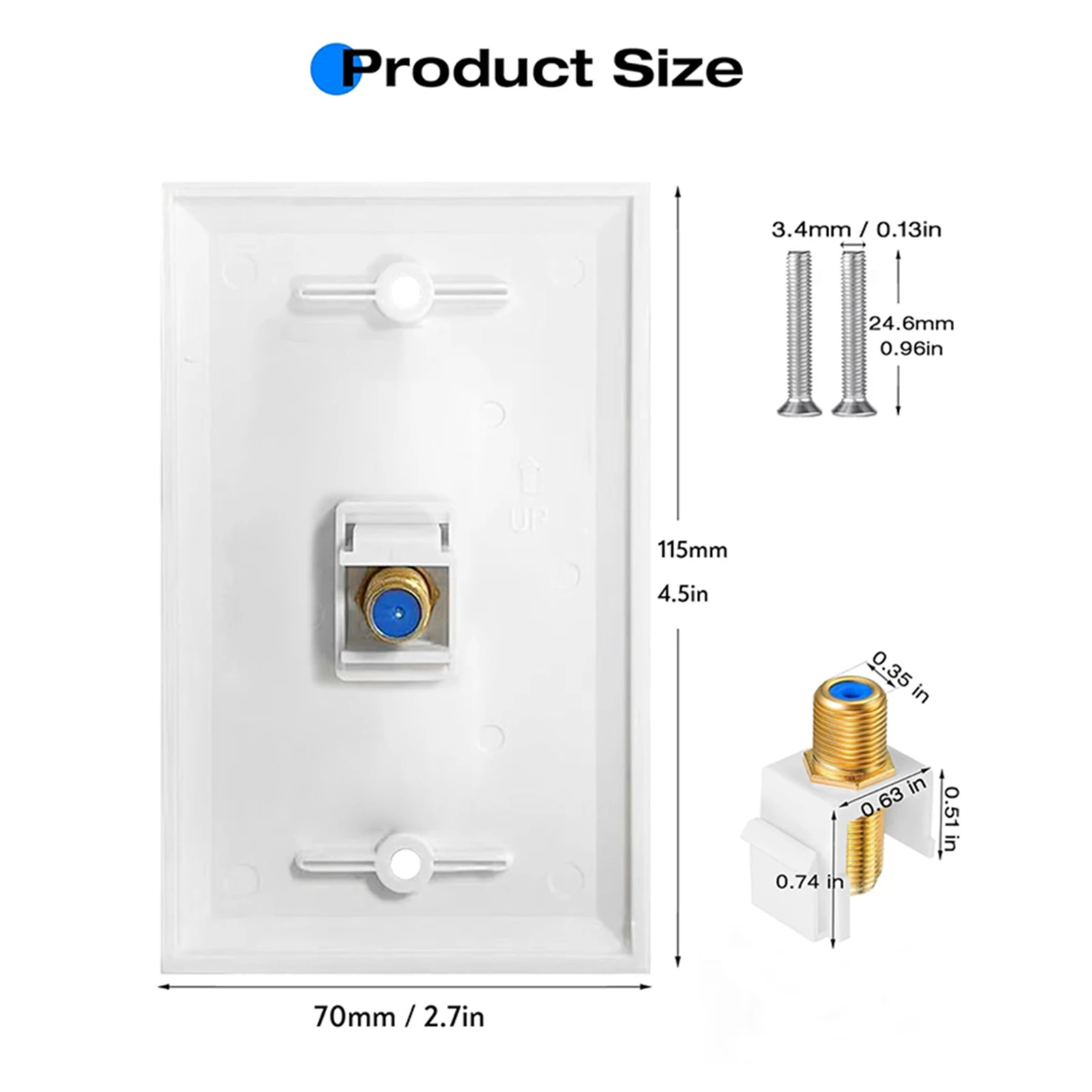 Placa de pared de 1 puerto: placa de pared + conector Keystone Coax + 2 tornillos.(No incluido soporte de montaje de bajo voltaje).