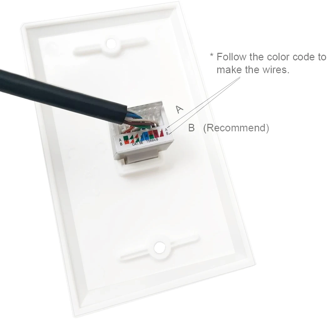 Admite el método de cableado A o B: siga el código de color A o B en la cubierta para cablear el cable Ethernet (dentro del cable tiene 8 cables), asegúrese de que el color de cada cable coincida con el código de color A o B.