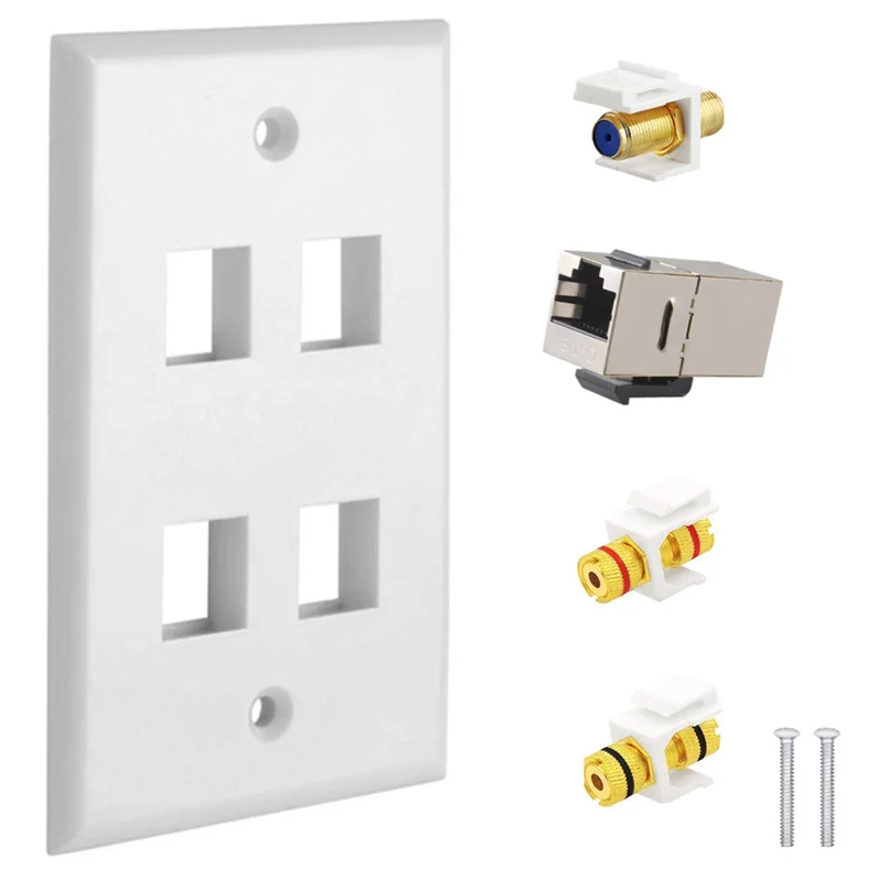 Comprar Placa de pared Keystone de 4 puertos, 115x70mm, 2 puertos, conector Banana, poste de encuadernación, Keystone, 1 puerto, Ethernet Cat6, 1 puerto, Cable coaxial, TV, puerto tipo F