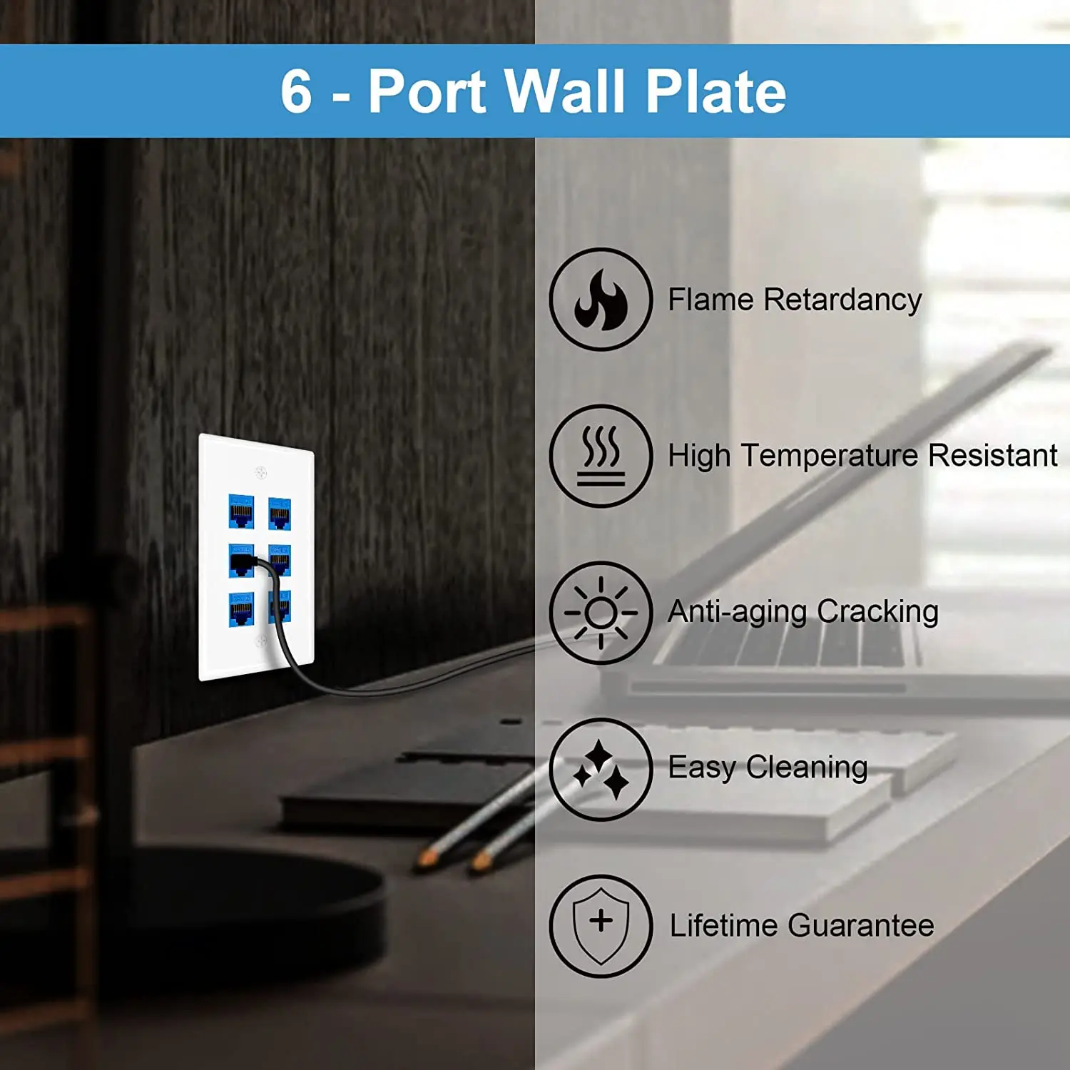 【SÚPER SIMPLE DE INSTALAR】 El paquete incluye: 1 placa de pared trapezoidal de plástico ABS resistente al fuego y 2 tornillos de acero inoxidable.Está disponible en 1 puerto| 2 puertos| 3 puertos| 4 puertos| Placas de pared con conector keystone de 6 puertos.