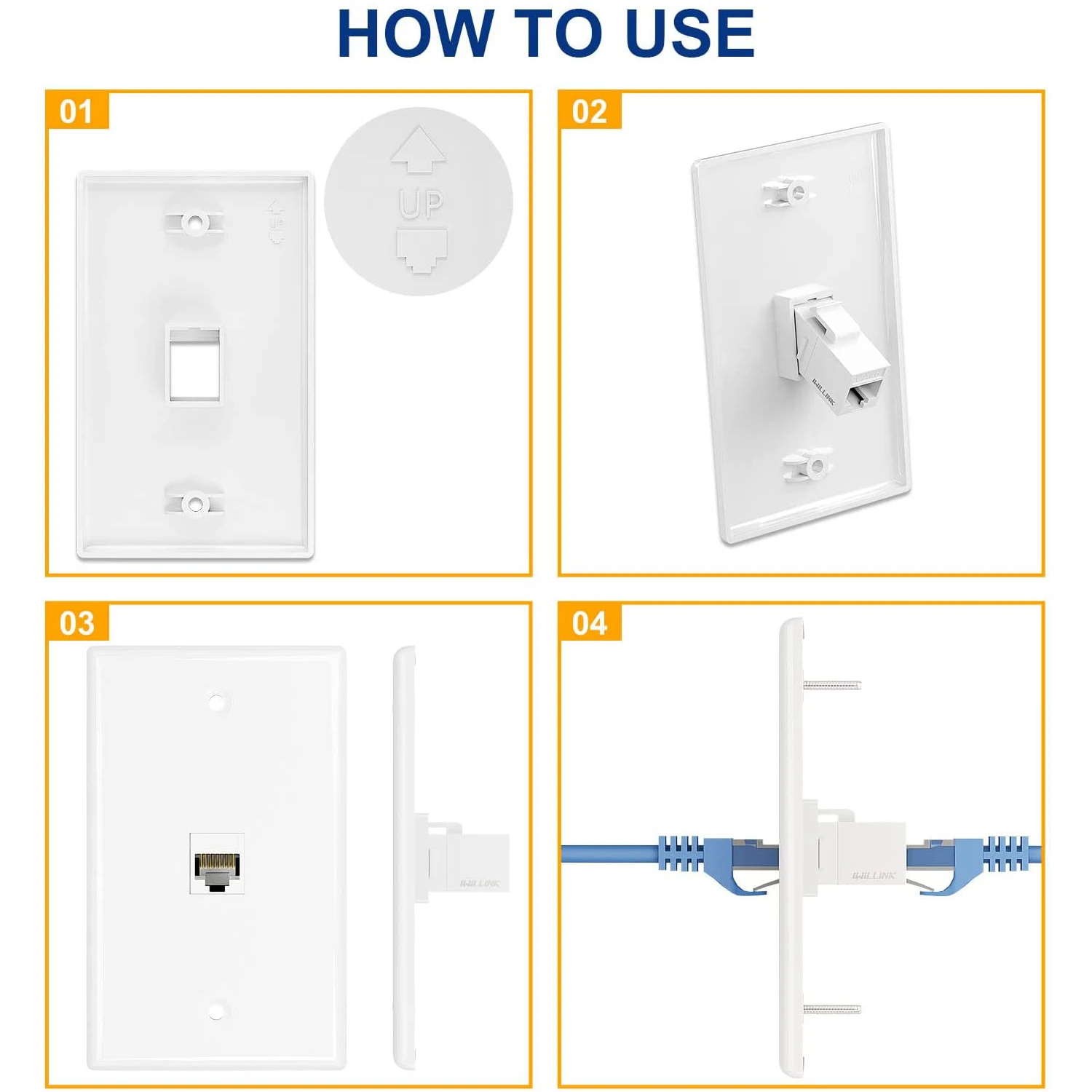 【PALAS DE PARED DE 1 PAQUETE】Nuestras placas de pared Ethernet de 1 paquete proporcionan suficientes placas de salida para algunos proyectos de renovación en la oficina en casa, y es conveniente para usted con una conexión sin herramientas.