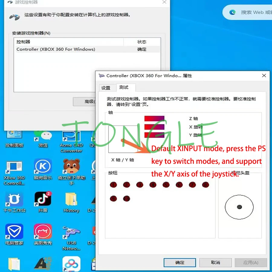 4. PC host D-input: After the connection is successful on the PC host in D-input mode, the host will not issue a channel light, and the default power-on is orange