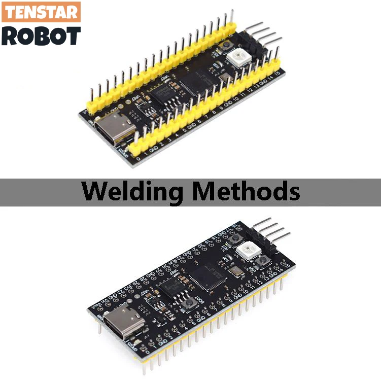 Pico ha sido diseñado para utilizar cabezales de PIN soldados de 0,1 "(es un paso de 0,1" más ancho que un paquete DIP estándar de 40 pines) O se puede utilizar como un "módulo" montable en superficie, ya que los pines IO del usuario también están almenados. Hay almohadillas SMT debajo del conector USB y el botón BOOTSEL, que permiten acceder a estas señales si se utilizan como un módulo SMT soldado por reflujo.