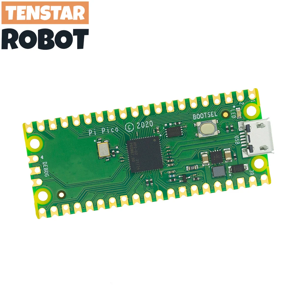 El Raspberry Pi Pico es una placa microcontroladora basada en el chip microcontrolador Raspberry Pi RP2040. Ha sido diseñado para ser una placa microcontroladora de bajo costo y alto rendimiento con interfaces digitales flexibles. El Raspberry Pi Pico cuenta con dos núcleos ARM de más de 133MHz; 256KB RAM; 30 pines GPIO; y una amplia gama de opciones de interfaz. Esto se combina con 2MB de memoria Flash QSPI integrada para el almacenamiento de código y datos.
