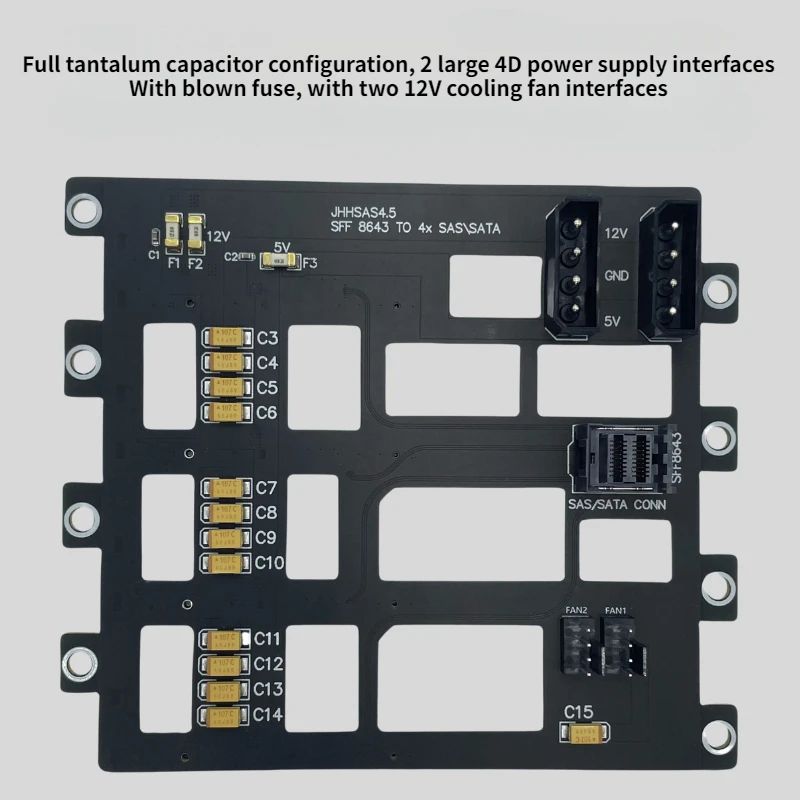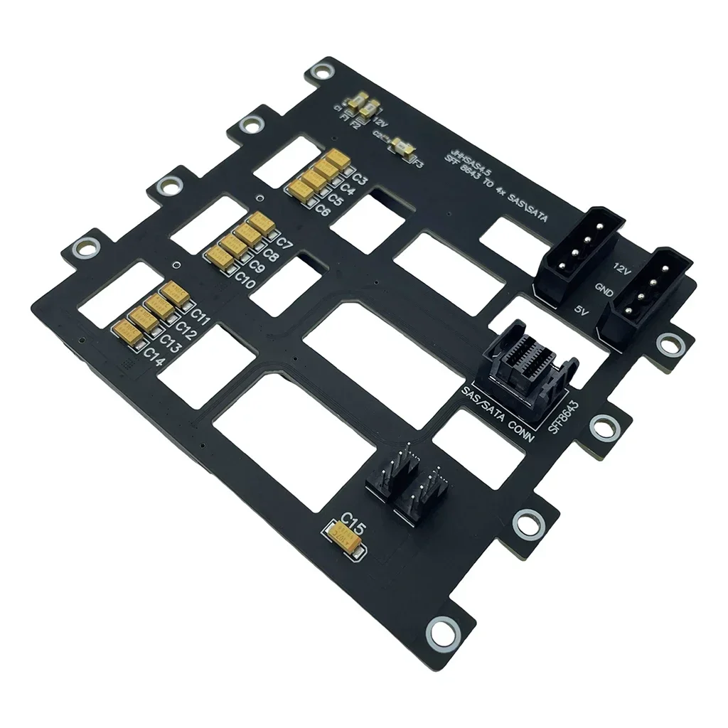 Placa posterior de disco duro SAS\SATA para placa de expansión de servidor de almacenamiento Nas, adaptador de HDD de 6 Gbps SFF8643 a 4 compartimentos, fuente de alimentación 4D grande