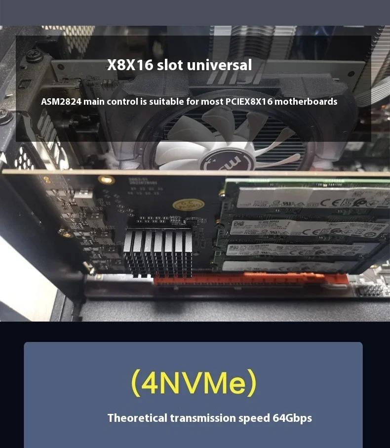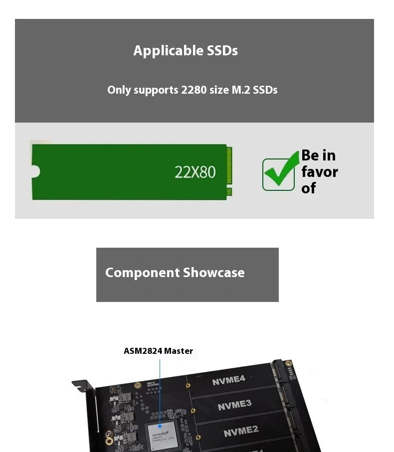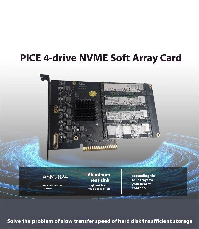 Comprar Placa principal gratuita dividida ASM2824 PCIe a M.2 NVME SSD 4 cuatro discos tarjeta de expansión de matriz RAID suave unidad libre