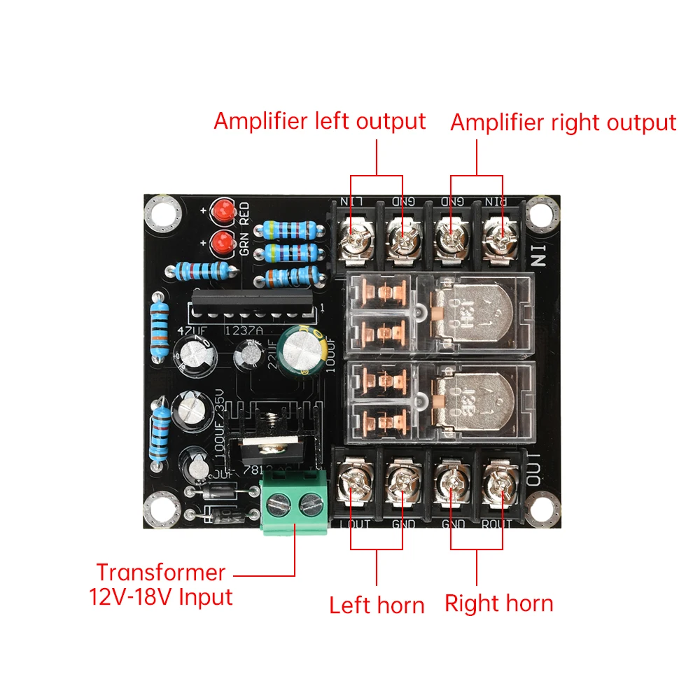 Puntos de venta del producto: 1.Circuito simple, cableado conveniente: adopta un diseño de circuito simple, operación de cableado simple y conveniente, adecuado para una variedad de entornos de instalación y reduce el umbral de uso 2.Gran compatibilidad y amplia aplicación: puede adaptarse a la mayoría de las placas amplificadoras de potencia, satisfacer las necesidades de diferentes equipos y mejorar la flexibilidad y versatilidad de uso. 3.Salida de alta potencia, gran rendimiento: admite salida de alta potencia de 300 W * 2, garantiza una calidad de sonido clara y estable, adecuada para escenas de audio de alta demanda 4.Diseño de indicador LED: equipado con indicador LED, que se ilumina cuando se trabaja y se apaga cuando se inicia la protección, y muestra el estado de funcionamiento en tiempo real para un fácil monitoreo y mantenimiento. 5.Múltiples funciones de protección: con retardo de encendido (aproximadamente 3 segundos) y protección de CC (el voltaje de control inicial es de aproximadamente 1 V), previniendo eficazmente daños al equipo y extendiendo la vida útil