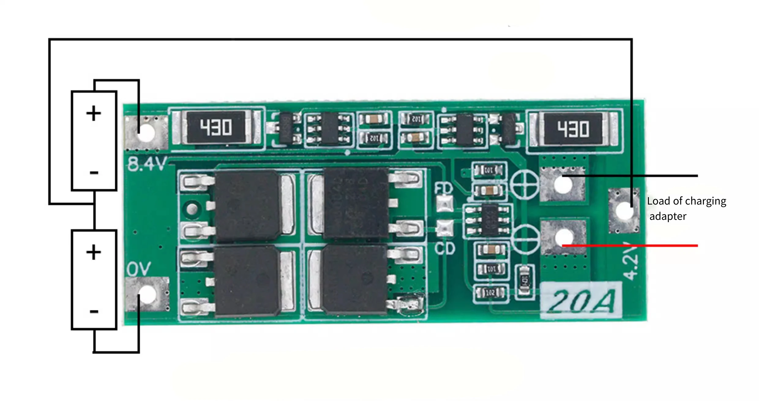 Conecte estrictamente 0V, 4,2V, 8,4V según el diagrama.Al conectar la batería por primera vez, es necesario cargarla antes de salir.