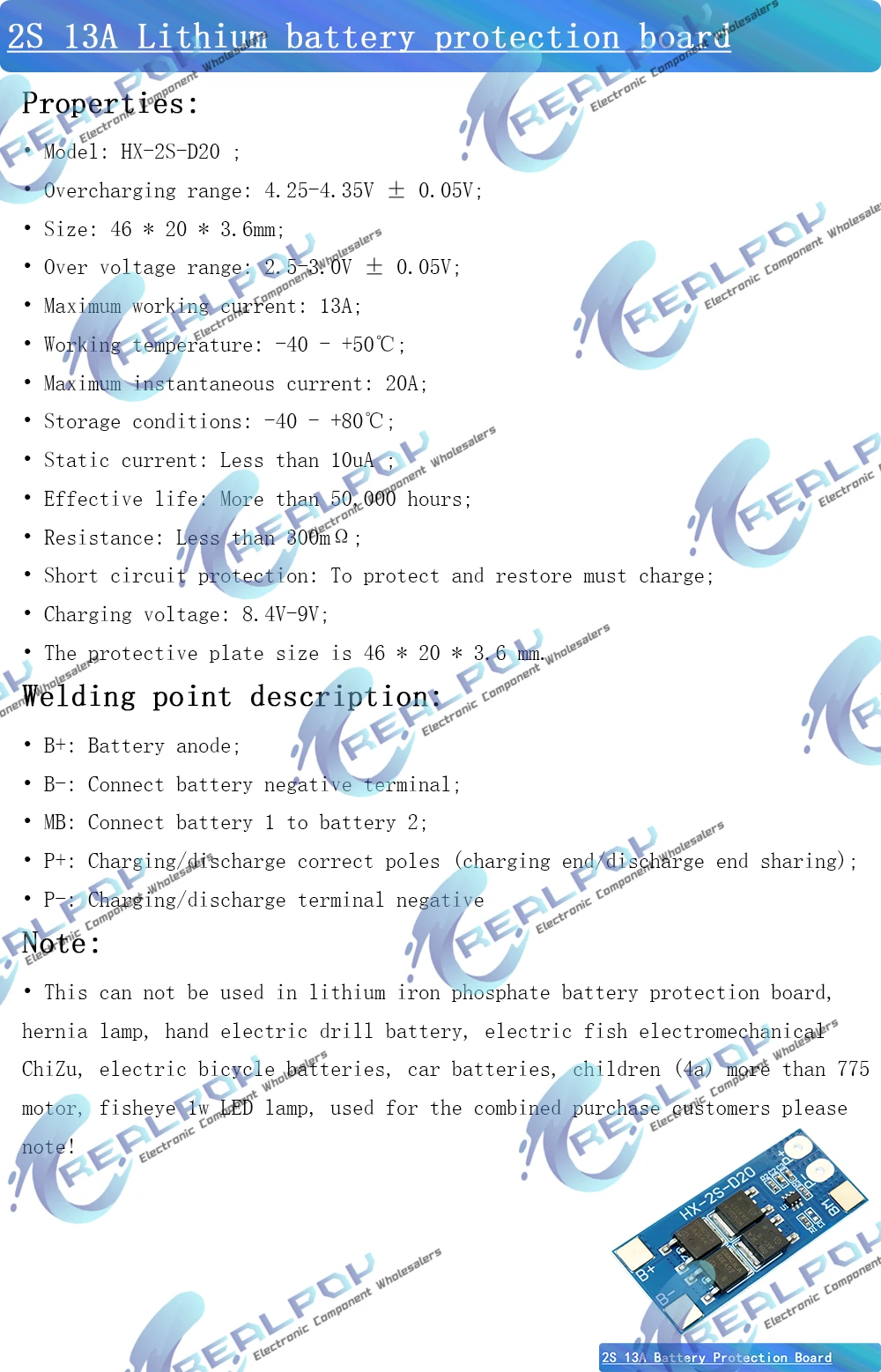 Comprar Placa de protección de batería de litio 2S 7,4 V 18650 8,4 V Placa de protección de batería 13A corriente de trabajo 20A limitación de corriente