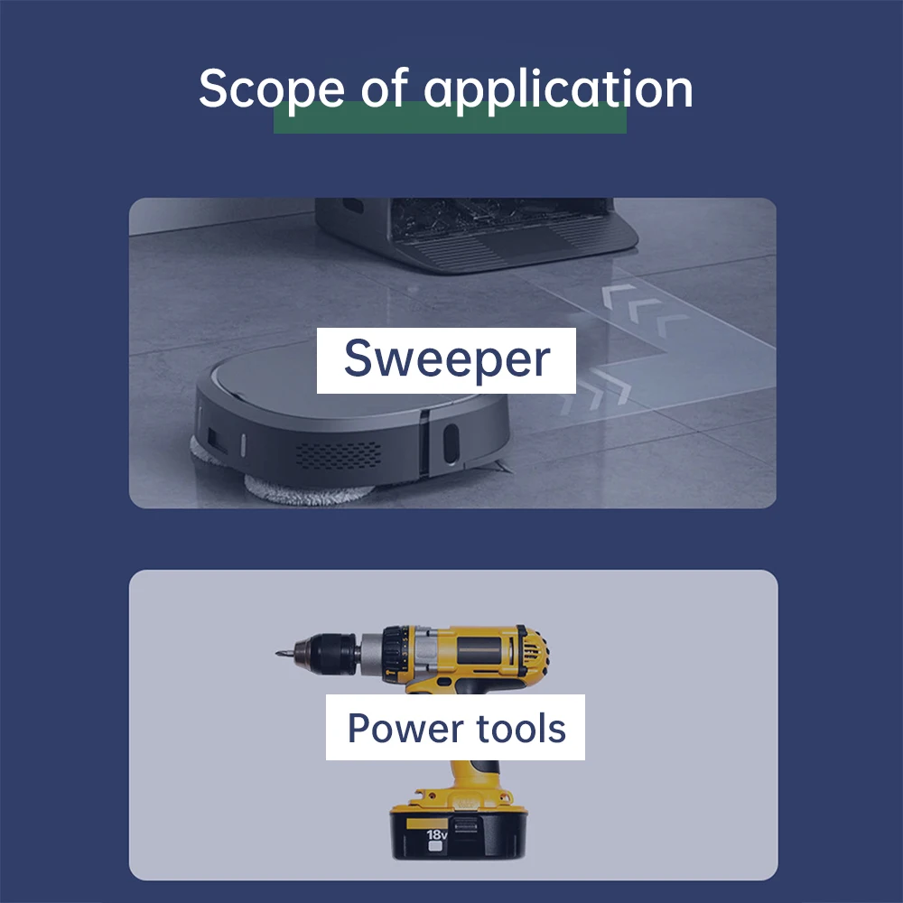 4.Amplia gama de aplicaciones: puede usarse ampliamente en robots de barrido, herramientas eléctricas y otros equipos, brindando soluciones confiables de protección de energía para una variedad de productos.