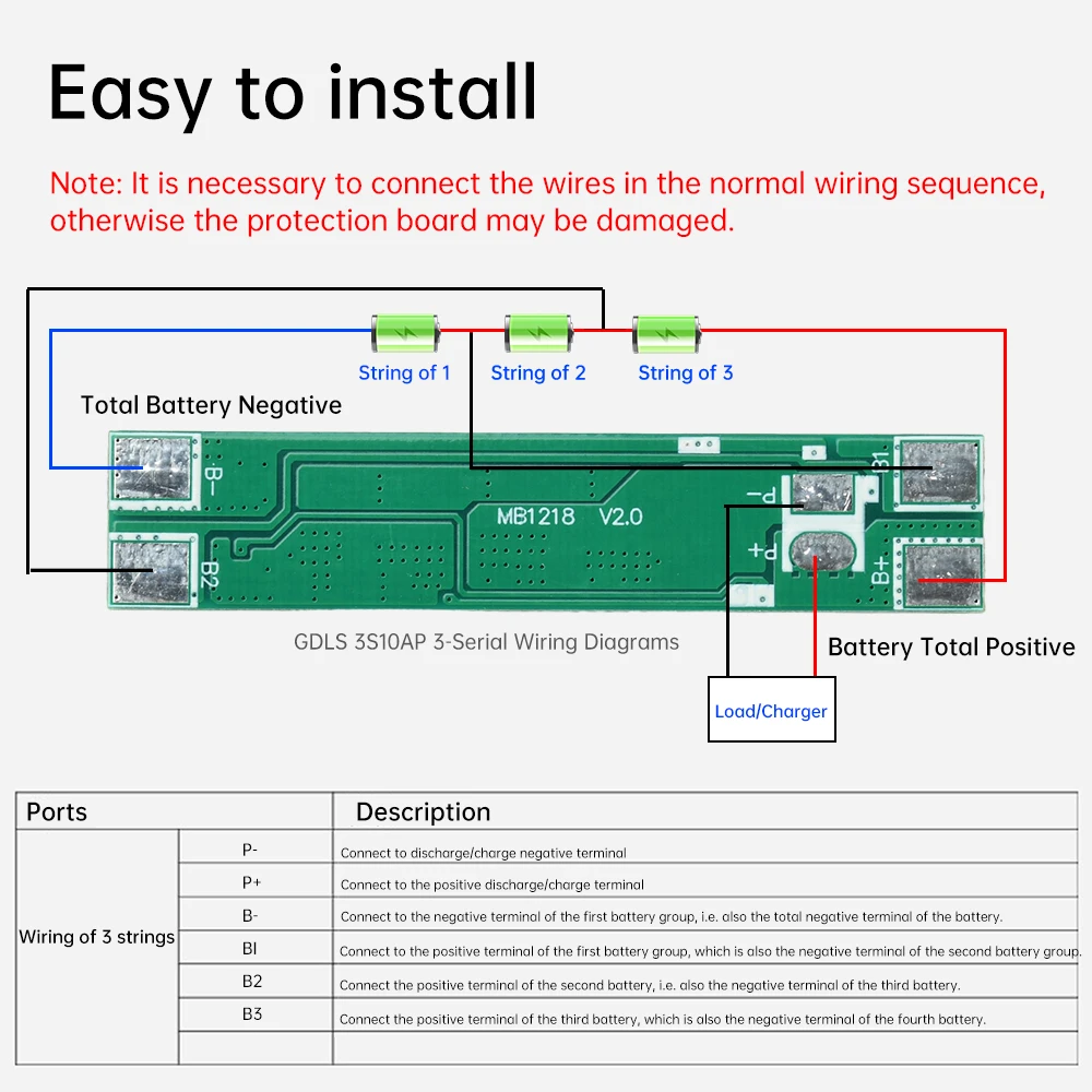 Comprar Placa de protección de batería de litio 3S 11,1 V 12V 12,6 V mismo puerto protección de carga/descarga módulo de Control de temperatura BMS