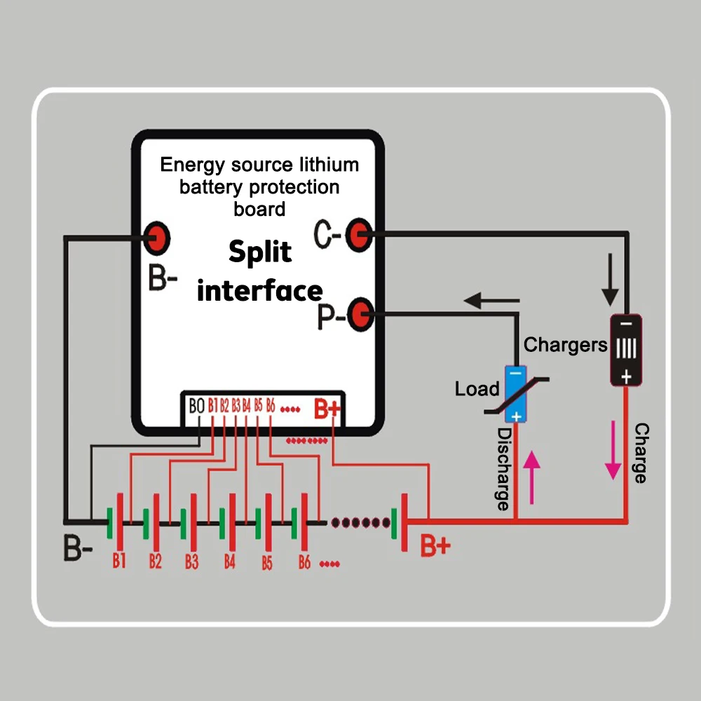 5.Conecte la placa a la batería de litio en el orden de BO, B1, B2 y B+.