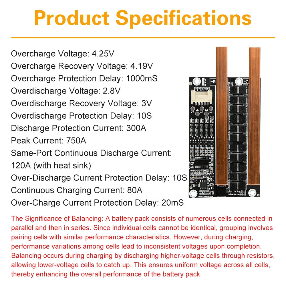 1 placa de protección de batería de litio 3S 4S 120A, mismo puerto con placa PCB BMS de equilibrio para motor de barco, inversor de arranque de coche