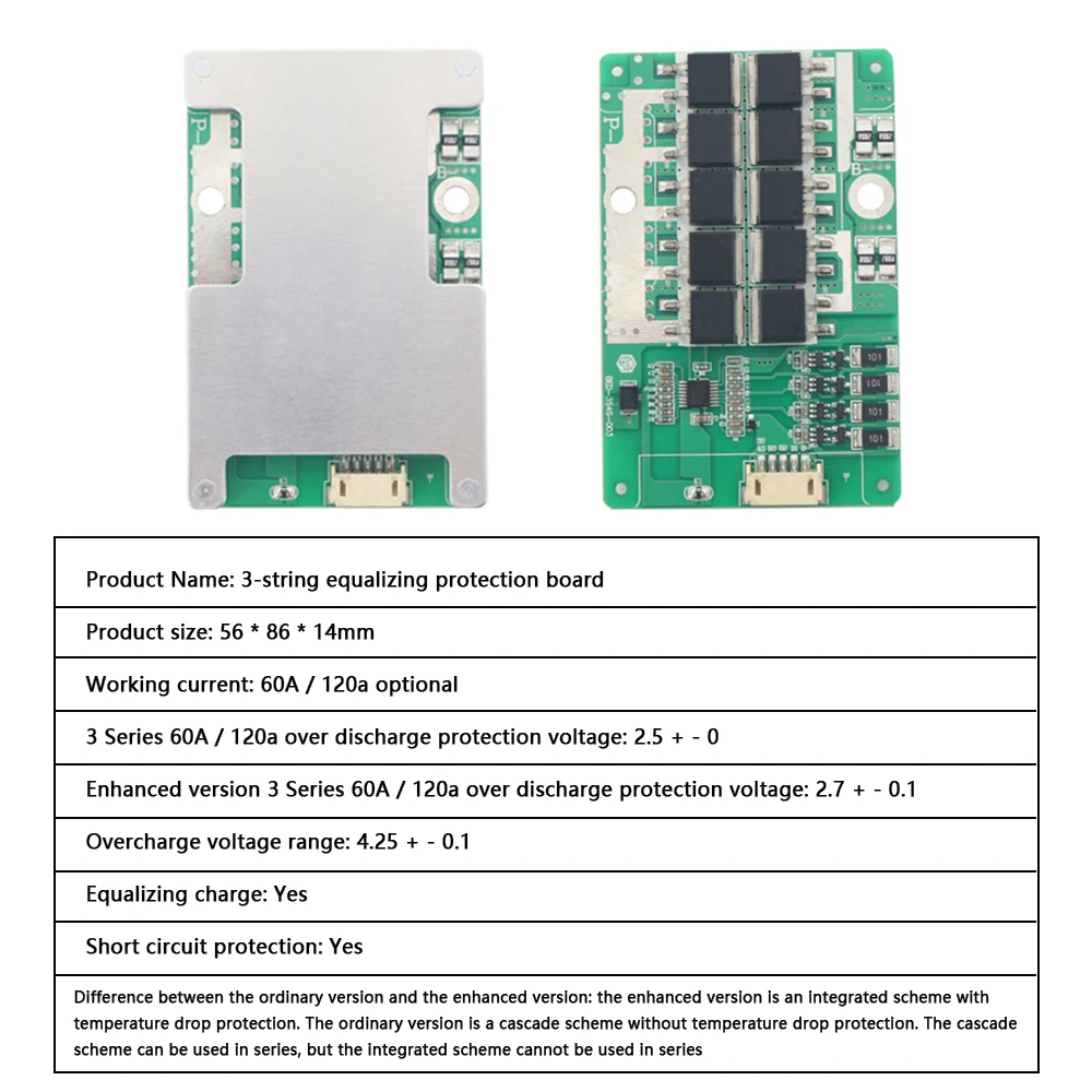 Versión mejorada 3 series 60A/120A voltaje de protección contra sobredescarga: 2,7 +-0,1