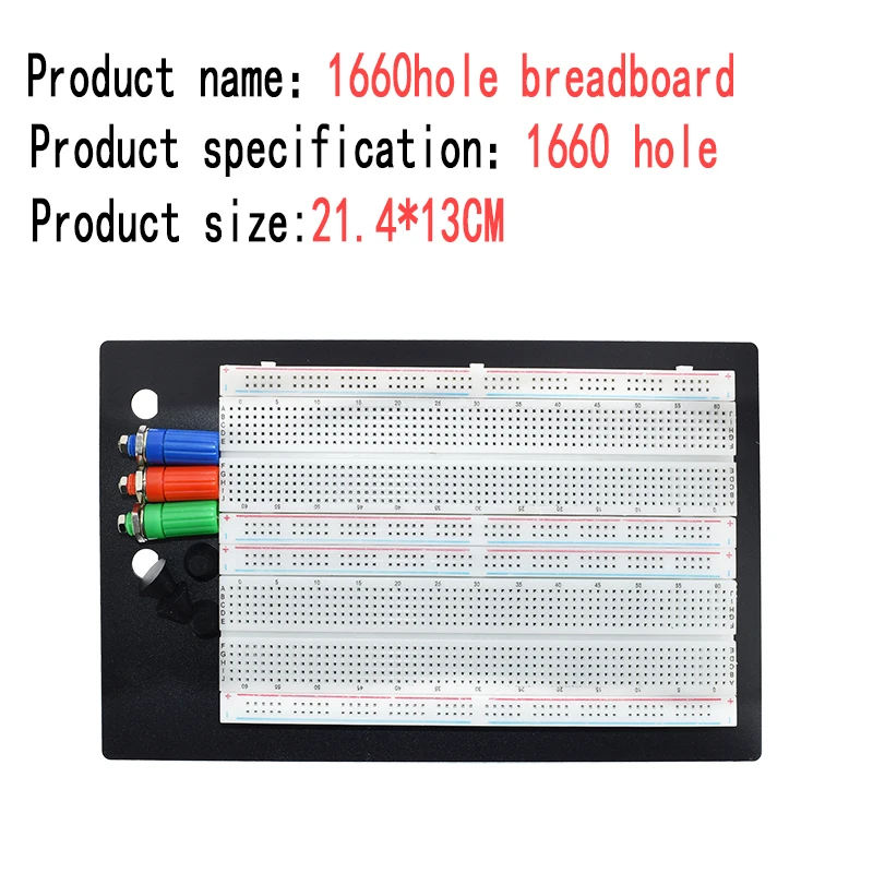 La Placa de pruebas sin soldadura no requiere soldadura, es reutilizable. Esto hace que sea fácil de usar para crear prototipos temporales y experimentar con el diseño de circuitos, que es una base de construcción para prototipos de electrónica.