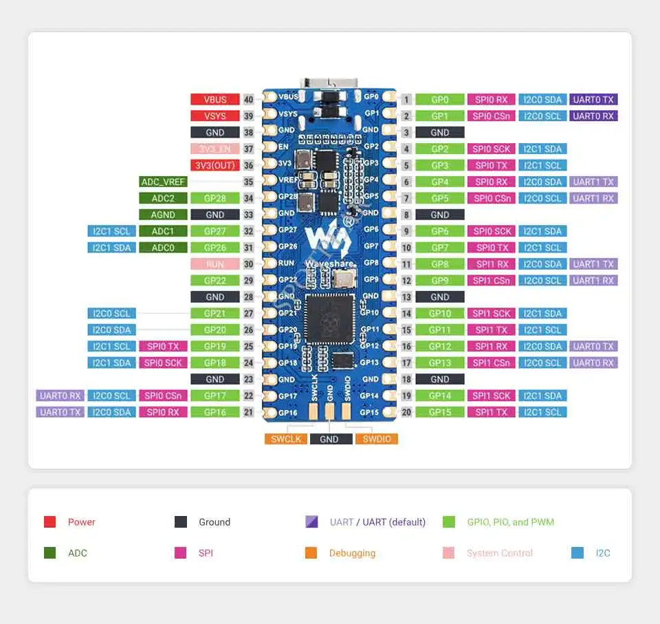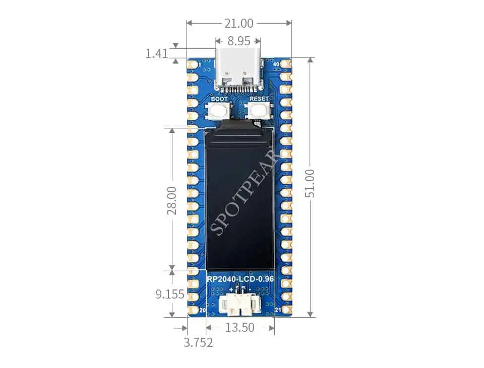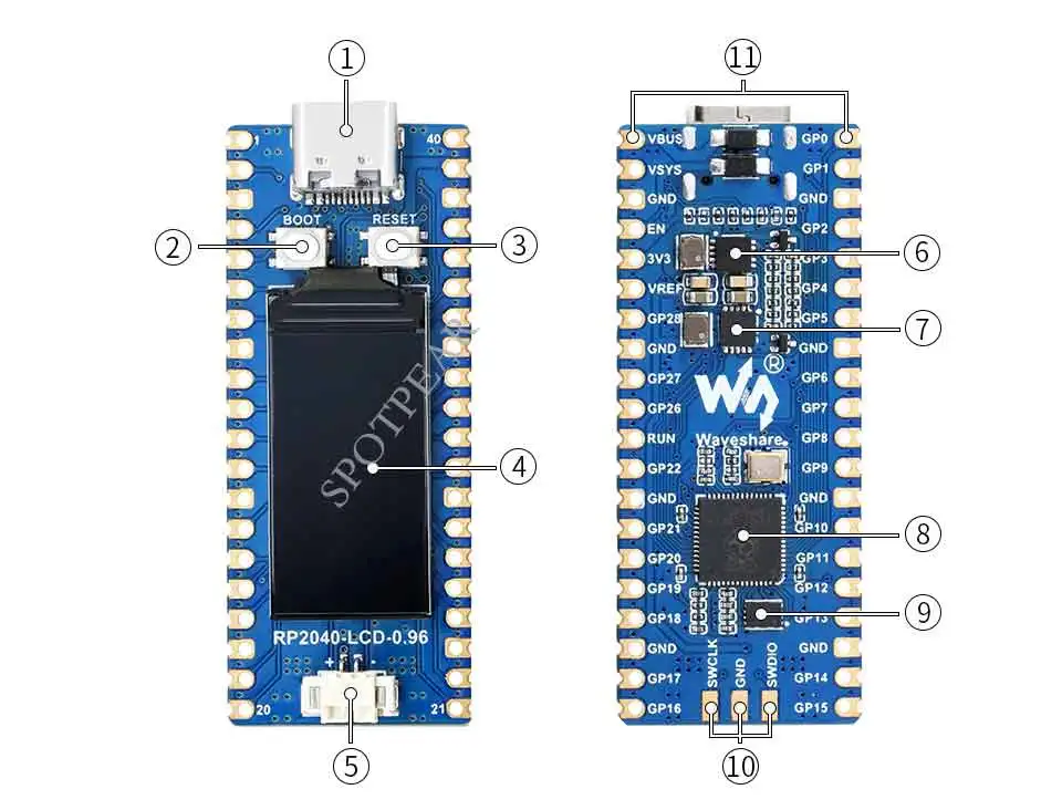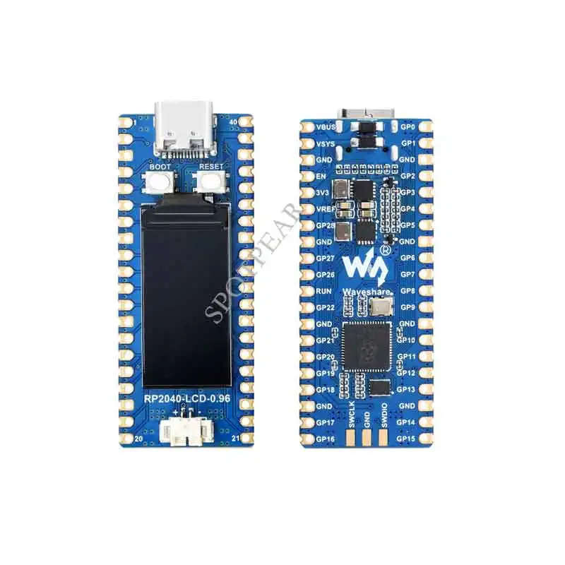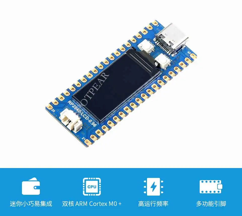 RP2040-LCD-0.96 es una placa de desarrollo de microcontroladores de bajo costo y alto rendimiento diseñada basándose en Raspberry Pi RP2040, con una interfaz digital flexible.Al igual que Raspberry Pi Pico, el hardware utiliza el chip microcontrolador RP2040 oficial de desarrollo propio de Raspberry Pi, y el software puede elegir el SDK C/C++ proporcionado por Raspberry Pi, o usar MicroPython para el desarrollo, lo cual es conveniente para un inicio rápido y incrustación Aplicar al producto.No solo eso, también tiene una pantalla IPS de 0,96 pulgadas, una interfaz de carga y descarga de batería de litio y un chip reductor DC-DC de alta eficiencia.