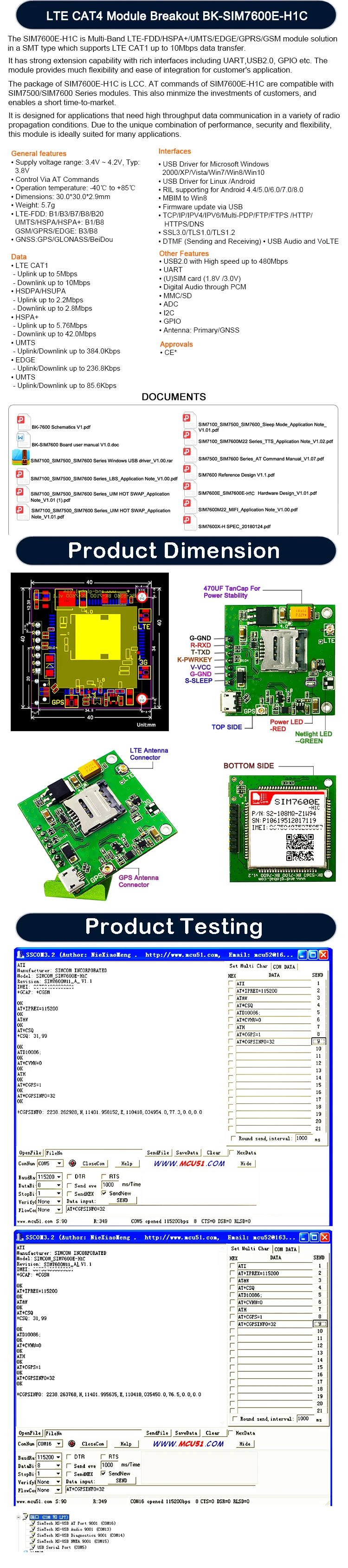 Placa de ruptura del módulo SIMCOM SIM7600E-H LTE Cat4, placa SIM7600ECore de bajo costo LTE-FDD B1 B3 B7 B8 B20