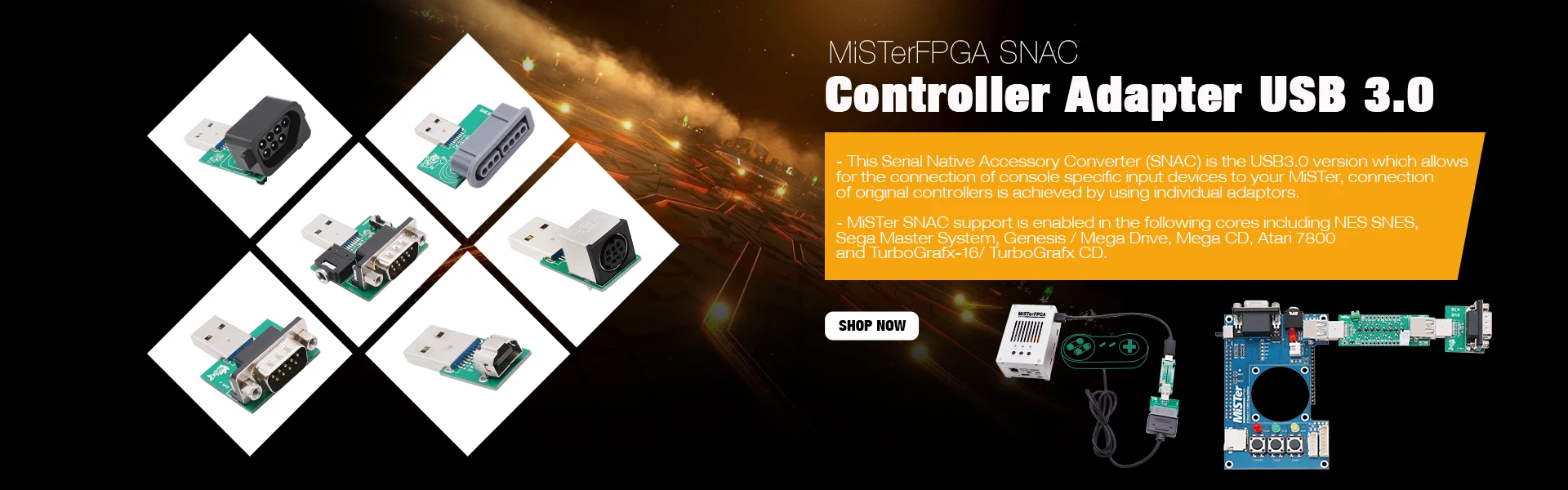 Este es un Hub USB adicional opcional para conexiones de dispositivos USB convenientes. Con esta placa, el MiSTer tiene siete puertos USB adicionales que se ajustan perfectamente al chasis existente. El puente USB se conecta sin problemas a la placa DE10-Nano SoC sin cables adicionales.