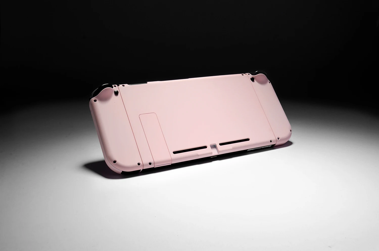 Instalar la placa trasera de la consola es fácil. Simplemente desmonte su carcasa trasera original y el soporte del interruptor, luego reemplácelo con nuestra placa trasera y soporte.