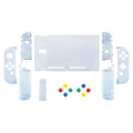 El control de calidad en esto es genial. Los colores son idénticos al producto mostrado. El material es translúcido, no claro (transparente). Es una pena que no obtenga la carcasa frontal también, debe comprarla por separado a un precio caro. También, los orificios de los tornillos son muy débiles y pueden no asegurar los tornillos en su lugar. Todavía recomendaría este producto a las personas que desean personalizar su interruptor, pero les aconsejaría que tengan cuidado con los orificios de los tornillos, ya que son muy quisquillosos.