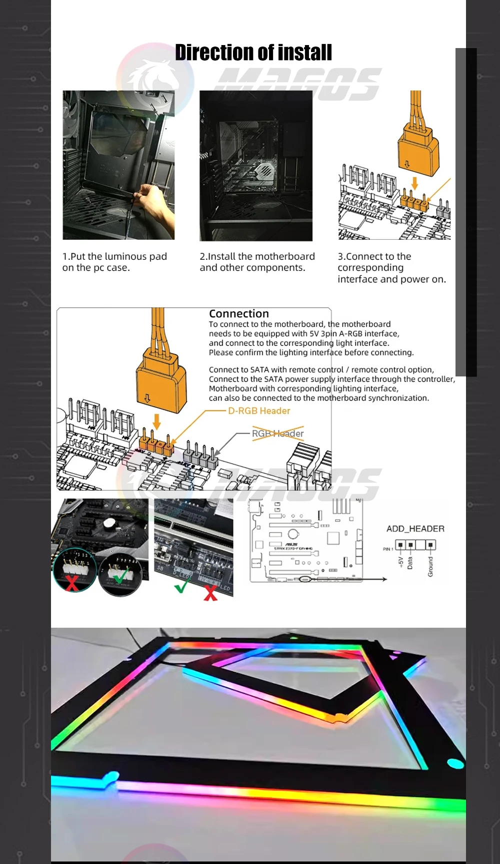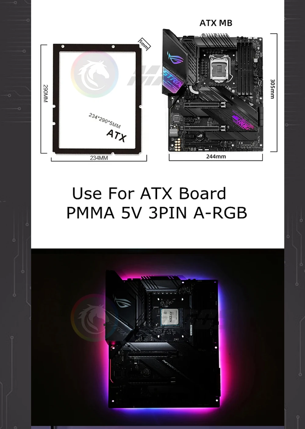 Comprar Placa trasera RGB M/B IO, tablero de luz decorativa 5V ARGB SYNC, Faro de escritorio, placa base ATX, emisor de luz trasera