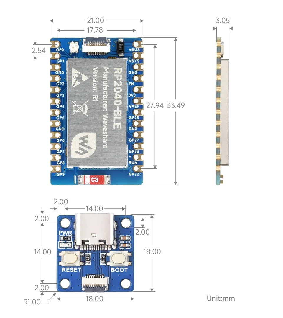 Comprar Placa Waveshare RP2040-BLE basada en RP2040 compatible con Bluetooth 5.1